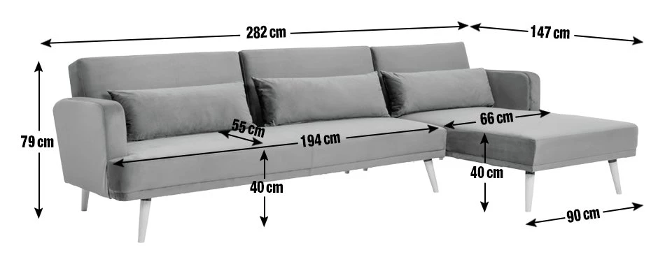 - Width of shorter seating area between arms: 194cm.