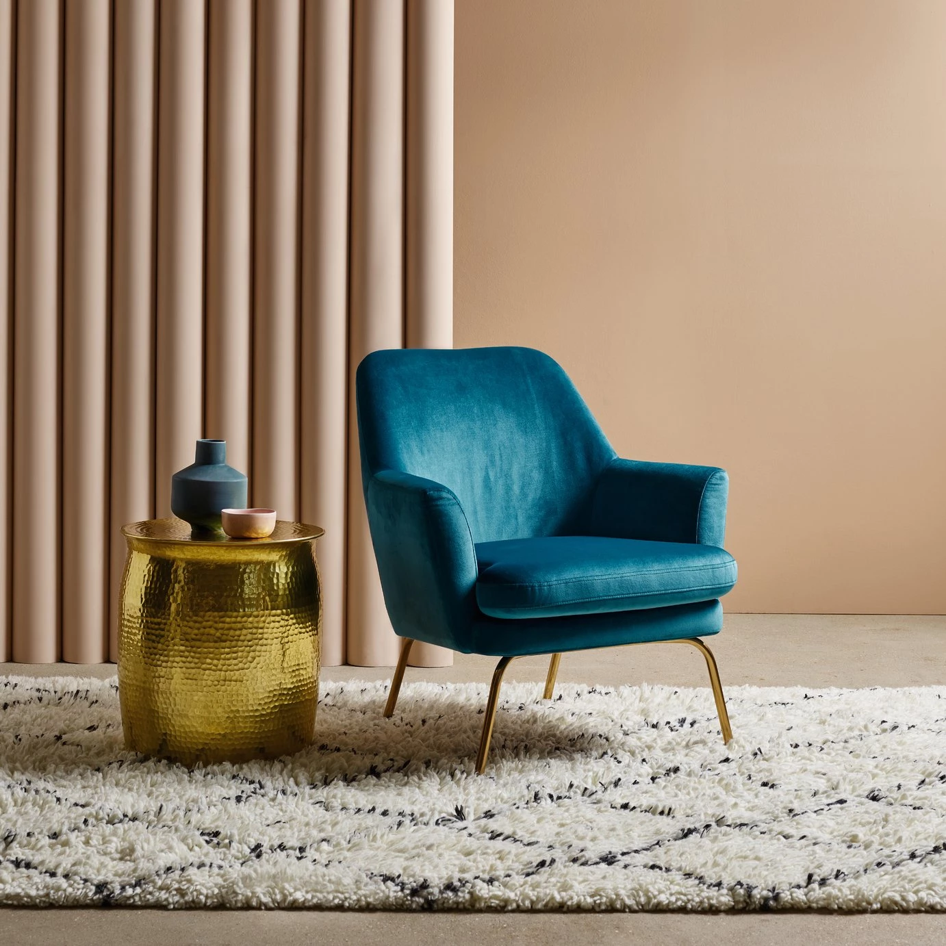 With its gentle round edges, high reclined back and sumptuous padding, the foam-filled seat cushion invites you to relax and wind down in style. This elegant and luxurious design is finished with black metal legs for a contemporary, lighter-than-air look, which makes it ideal for smaller spaces. Exclusive to Habitat and available in a choice of colours, the Celine chair is upholstered in durable polyester velvet and its seat cushion has piping to maintain its clean edge.