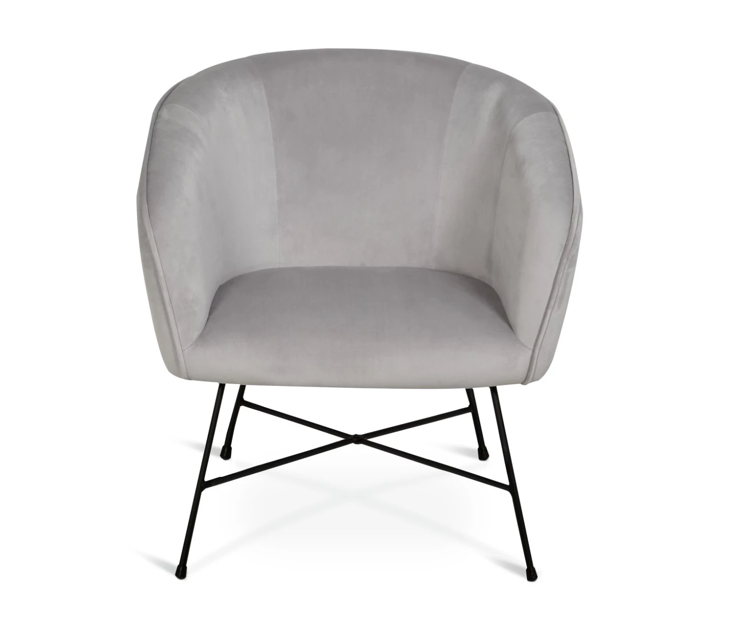 Create your very own zen zone with the Jax Habitat accent chair. This relaxing seat makes the perfect retreat for spot of evening reading. Its wraparound shape will cocoon you in plush silver velvet style fabric for dreamy comfort.