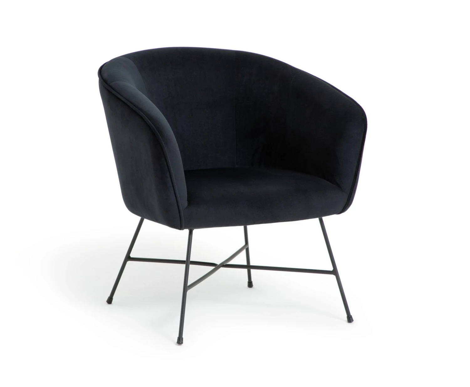It stands from the ground on a sturdy black metal frame, so the chair offers not only comfort but industrial character too. With its cosy appearance and super smooth velvet, this sophisticated chair would look just as fabulous in your bedroom as it would in the lounge. If you really want to unwind, why not pair the Jax with its matching footstool. It's perfect for putting your feet up.