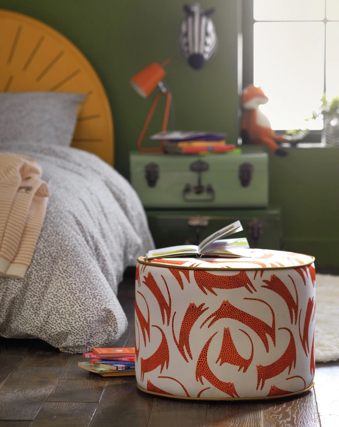 Practical and playful in equal measure, this cushioned fabric pouffe is versatile for a range of uses.