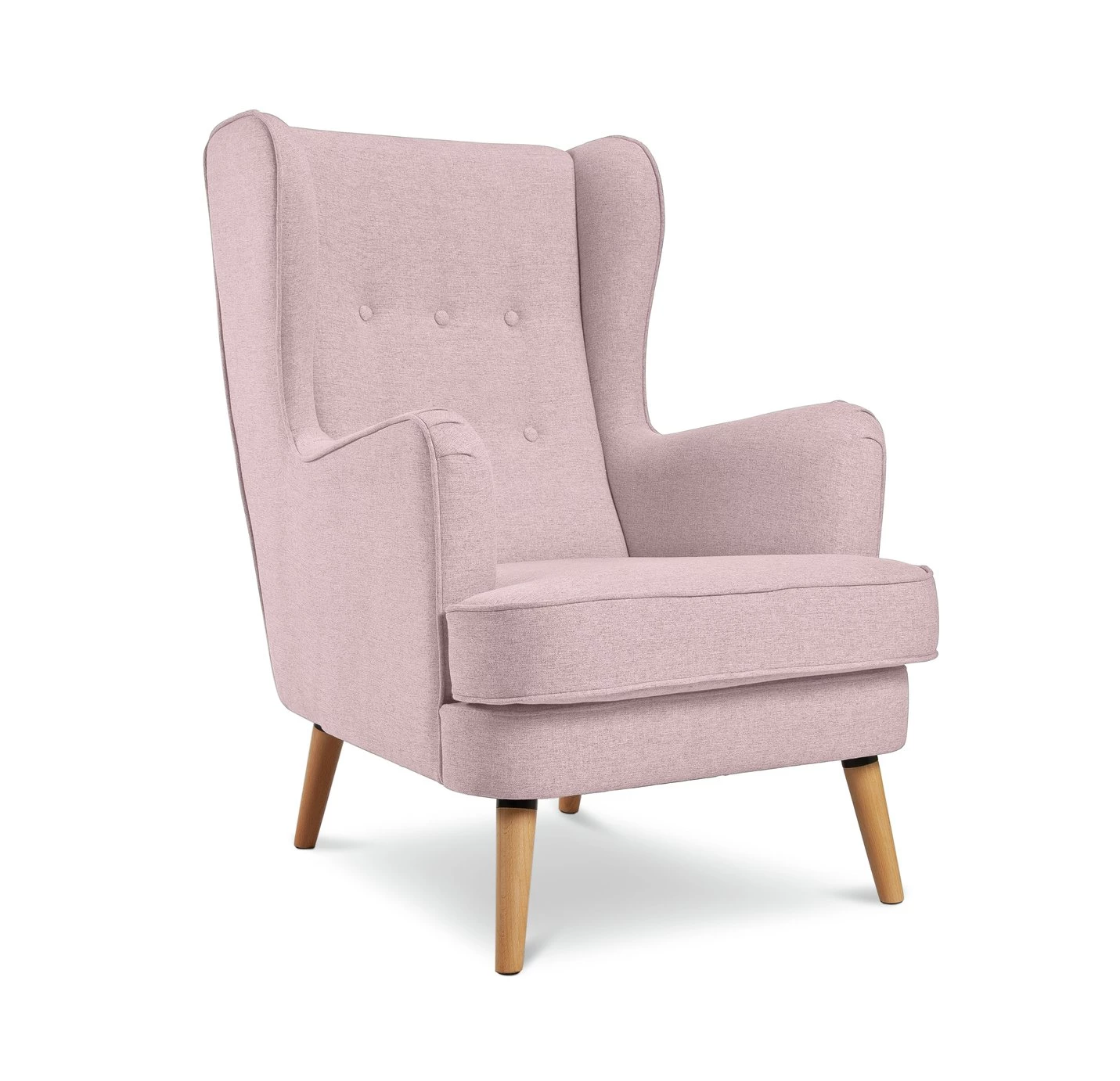 High back, high style. Think how many chapters you could plough through sitting comfortably on Callie. It has those vintage vibes you'd expect from a wingback chair, but with a modern twist. There's that classic button back detailing and ruching on the arms for textural appeal. The contemporary comes into play with those Scandi-look legs and the gentle blush pink fabric. Another chapter? Go on then.