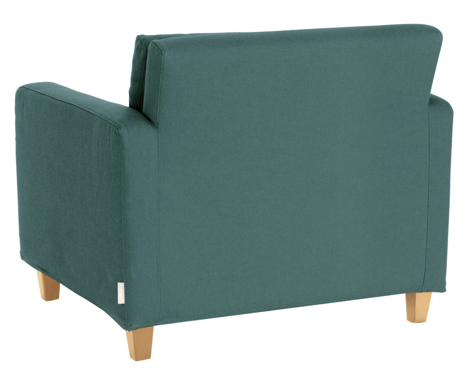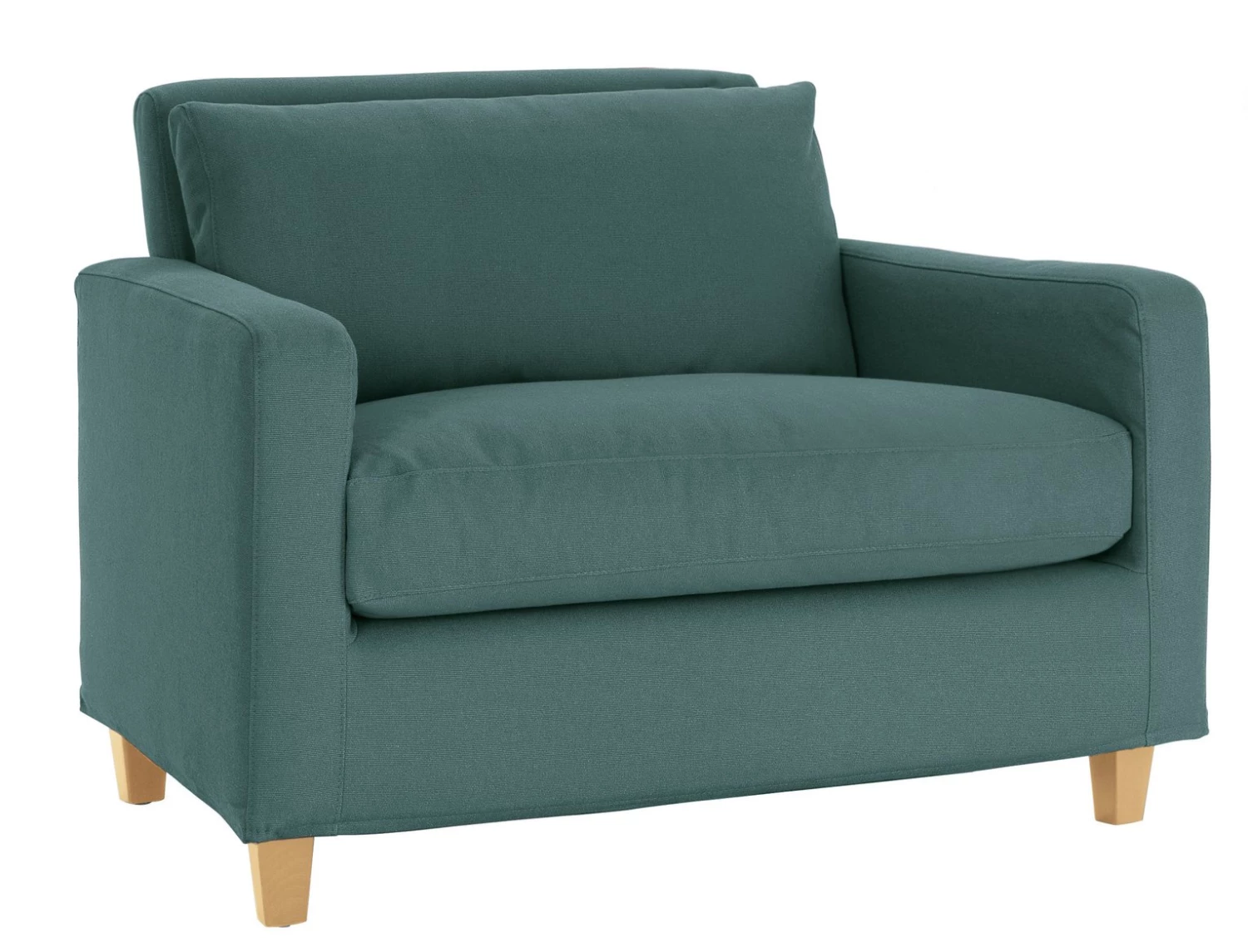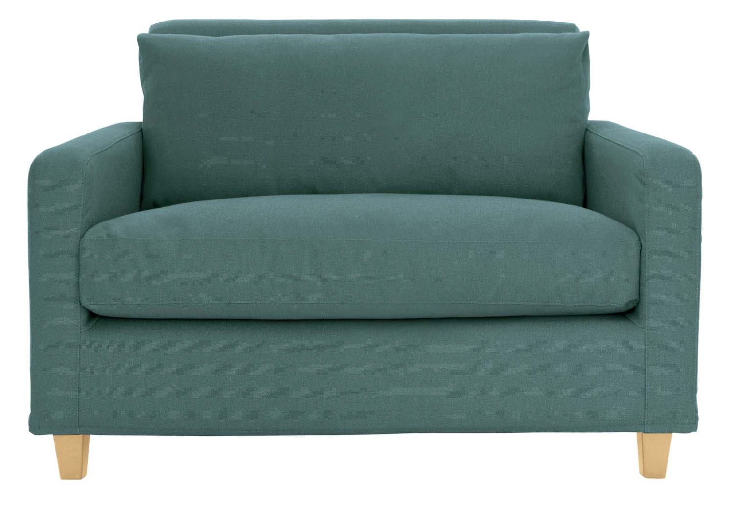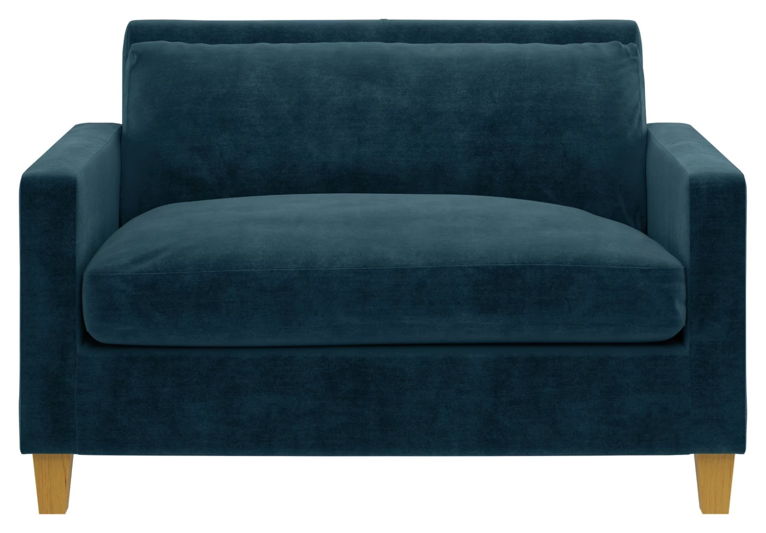 Lounge in style with this Italian made Chester teal blue compact sofa, which features a slim profile and a feather and fibre seat cushion, for a classic and timeless look. Designed by Matthew Hilton for Habitat and is fully upholstered in a removable, durable cover with oak stained feet. Part of the Habitat bestselling classic Chester sofa range, available in leather and fabric options, in various sizes and colours and with oak stained or dark stained feet.