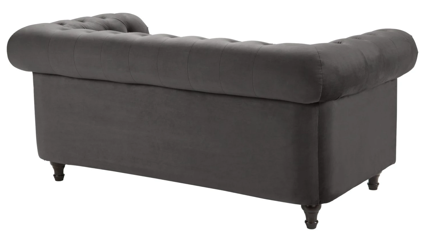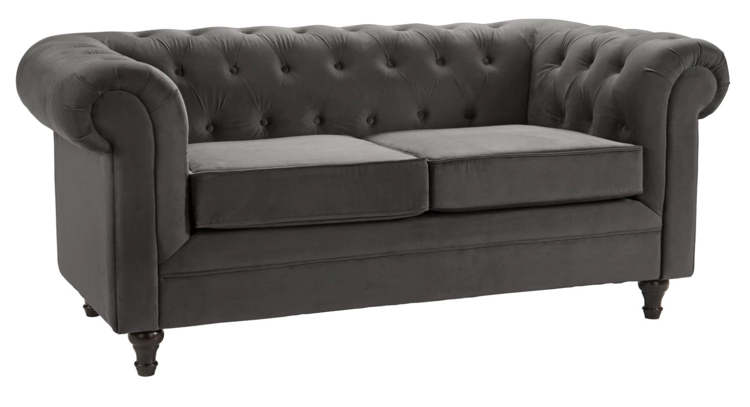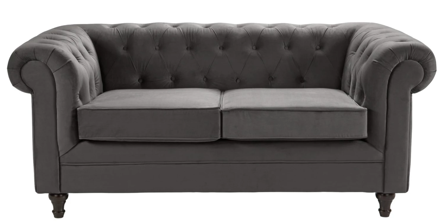 An iconic piece. Classic and timeless, the Habitat Chesterfield 2-seater sofa boasts a scroll arm design with sumptuous deep buttoning on the back panel and arms. It's beautifully upholstered in a velvet-effect fabric for a truly luxurious feel. It stands on real wood feet for the perfect finishing touch.