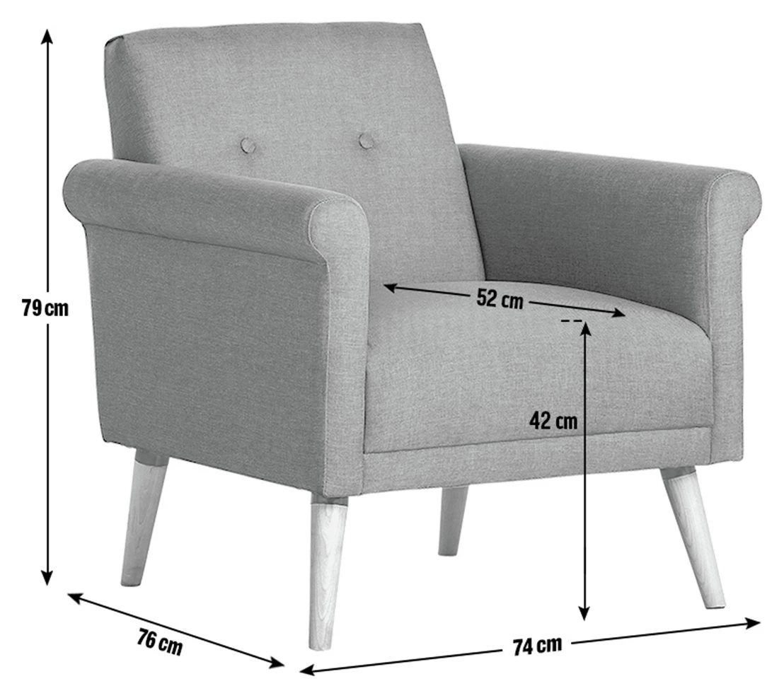 - Width of seating area between arms: 44cm.