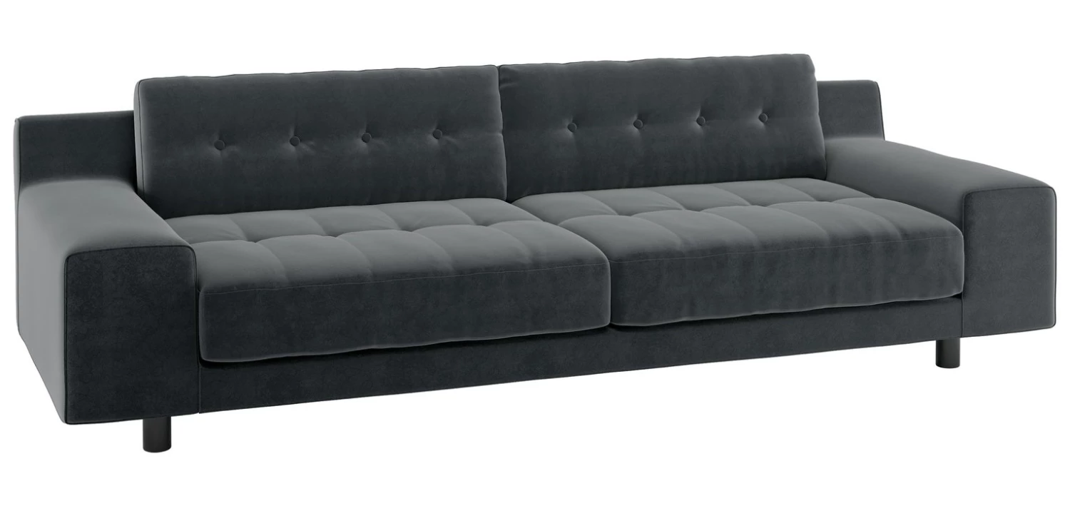 The sumptuous Hendricks dark grey velvet 4 seater sofa features low, wide arms and soft, deep feather and fibre cushions finished with button detailing. Made in Italy, this sofa has a substantial, retro-styled design and is fully upholstered with removable frame covers. Getting a sofa into your home can sometimes be a bit of a squeeze. Read our Sofa Measuring Guide to ensure your dream design is compatible with your space. Part of the Hendricks range and available in a choice of fabrics and leathers in a variety of colours and sizes.