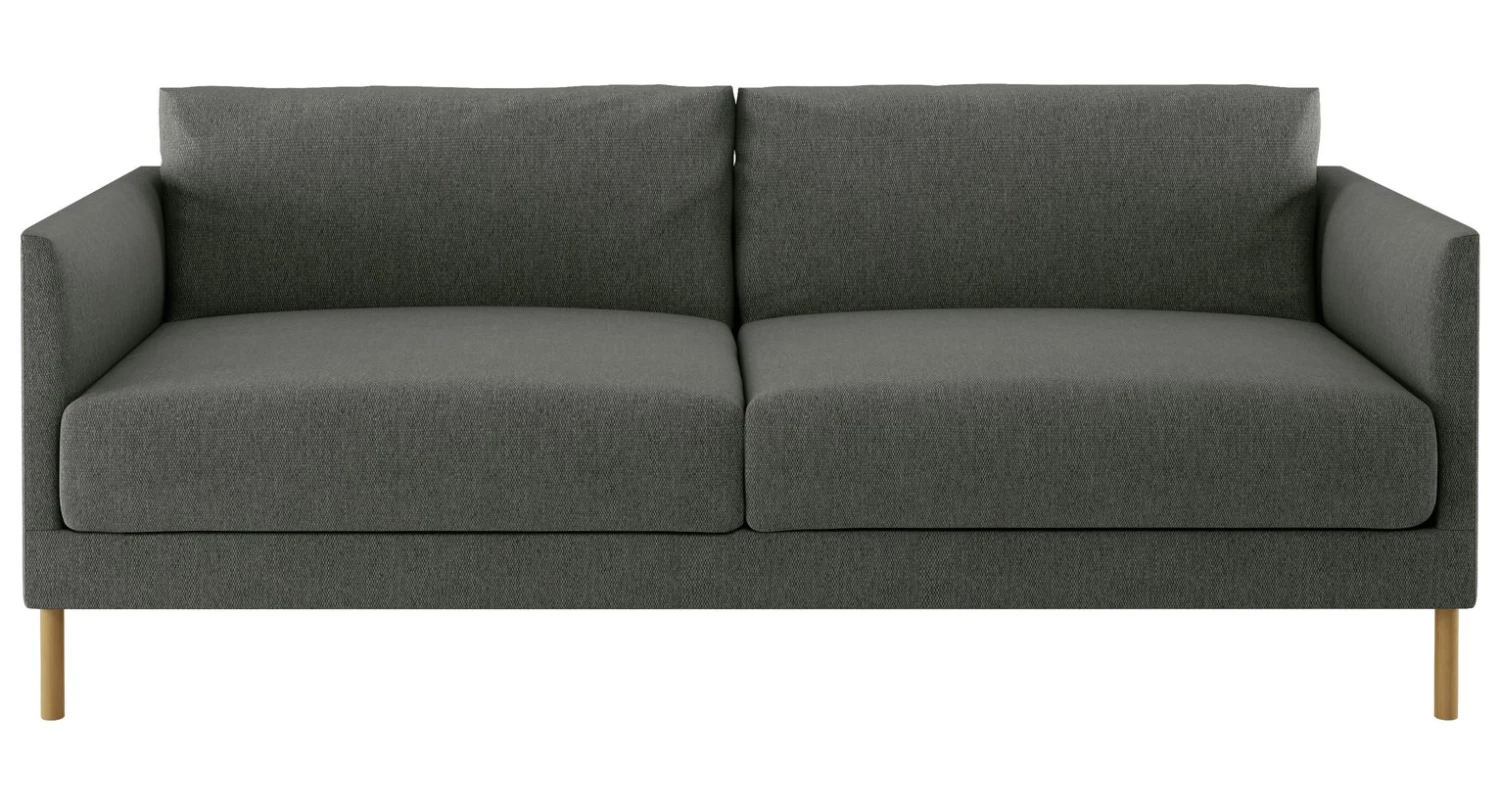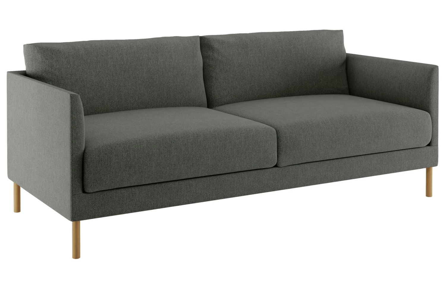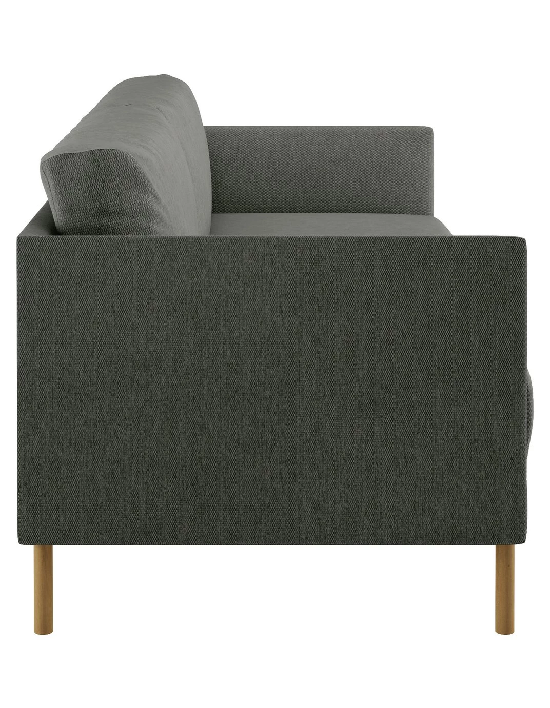 The Hyde charcoal fabric 3 seater sofa delivers high comfort with slender proportions. Contrasting a narrow, slim frame and legs with large, deep cushions, the sofa has a sleek, uncluttered profile. Upholstered in a smart, tailored fabric, the sofa has fixed seating and generous padding, providing long-lasting durability and ultimate comfort. Part of the Hyde sofa collection available in various colours and sizes.