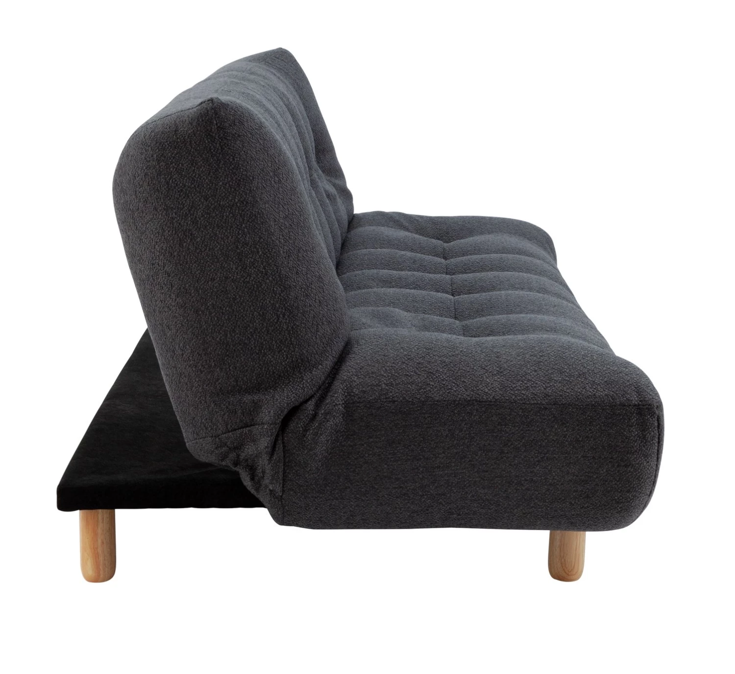 The Kota charcoal boucle 3 seater sofa bed features a click-clack mechanism that allows the back to flip all the way down, transforming a 3 seater sofa into a comfortable bed in seconds. Converting into a sumptuous mattress, this versatile sofa bed is the equivalent to a small double bed and has a generous, supportive foam and fibre filling for comfort and durability. Its compact proportions also make it ideal for the space-challenged.