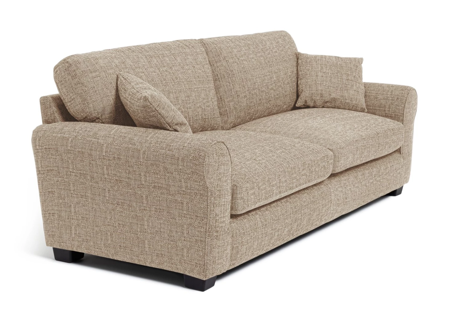 Room swoon. Soft cushions, plump arms and deep comfy seats. Our Lisbon's soft luxe foam filling is just waiting for you to sink into it. Curl up and get cosy to watch your favourite film. Designed for both comfort and looks and guaranteed to make your room feel like a home, it's an ingenious update on the classic scroll-arm sofa. With a solid internal hardwood frame and upholstered in a durable, soft woven fabric it is a stylish and timeless 4-seater. We love Lisbon.