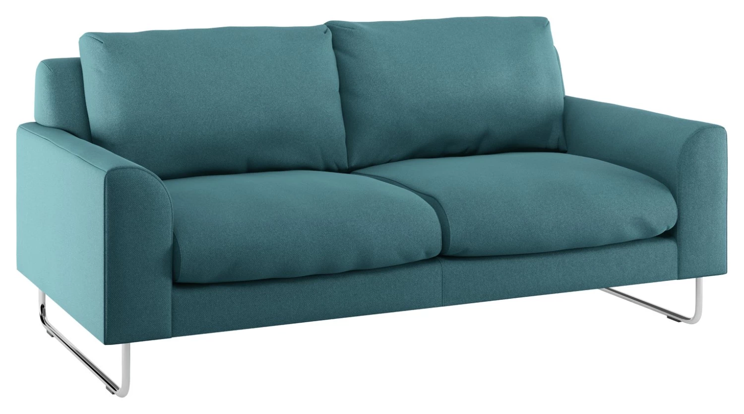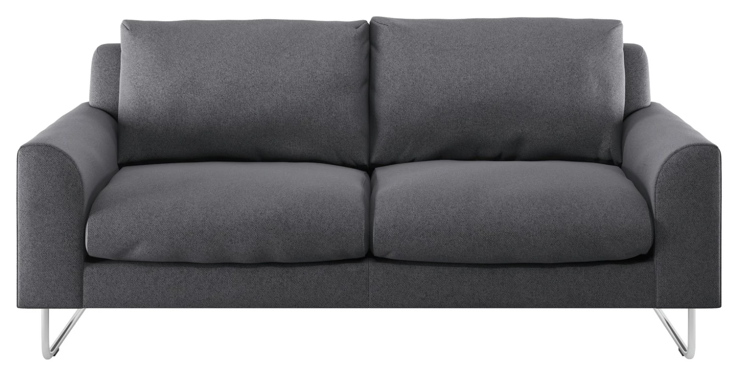 With large, squashy cushions and curved arms that soften its angular lines, the Lyle fabric 2 seater sofa is a relaxed, contemporary design. Perched on chromed ski legs, the inviting armchair's narrow frame allows a generous seat for its size; its cushions have a neat tucked detail on their corners and are removable for regular plumping. Perfect for busy homes, this 100% polyester fabric is soft yet extremely hardwearing with an easy-care finish to aid the removal of water-based stains.