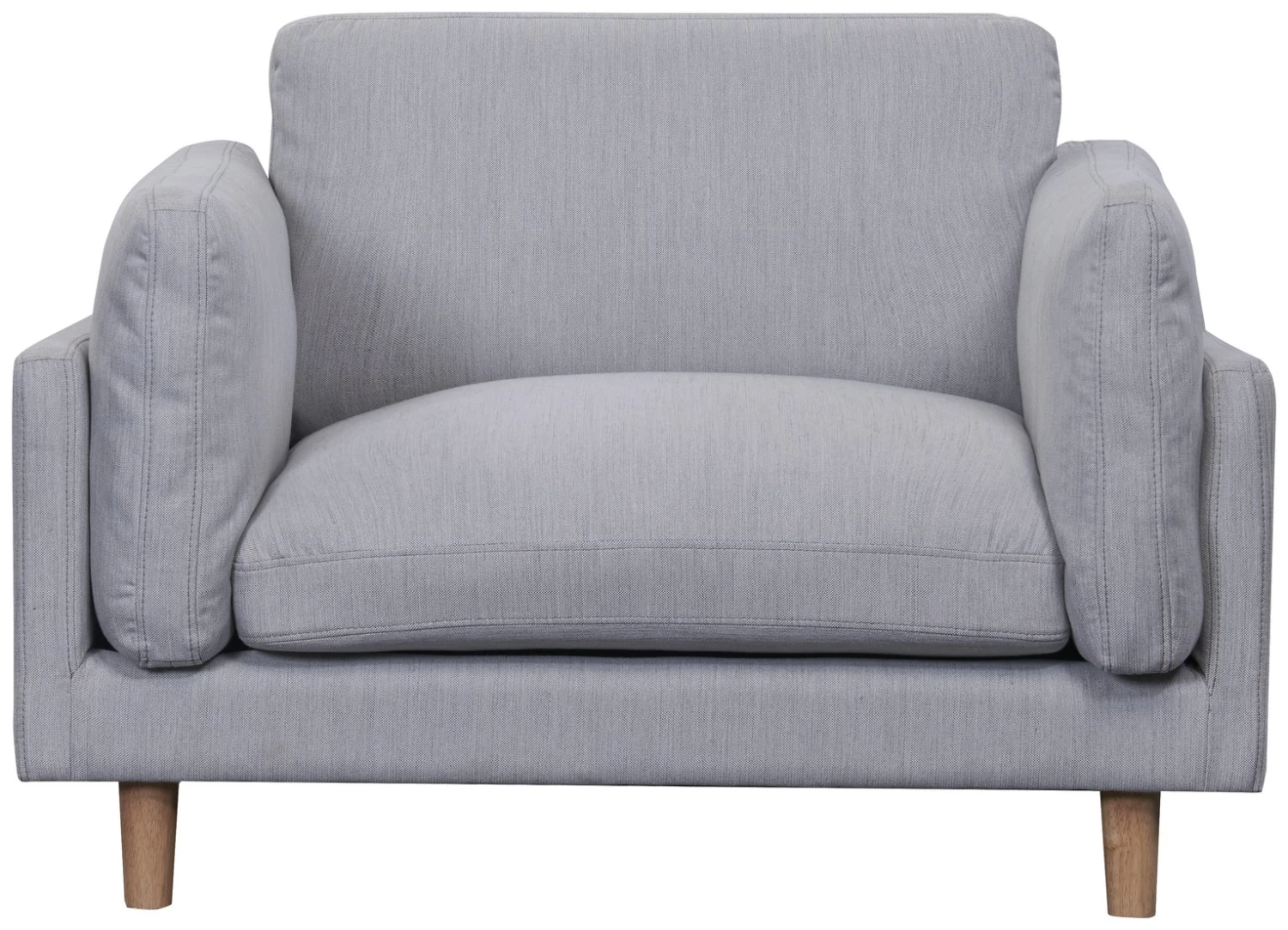 Stretch or snuggle it's your call. Bigger than an armchair, smaller than a sofa our smart grey cuddle chair is a comfortable choice. Sitting on tapered wooden legs the modern boxy design is padded with removable plump cushions for all round sink in softness. Whether it's for two or just you, Salome's the one to be with.