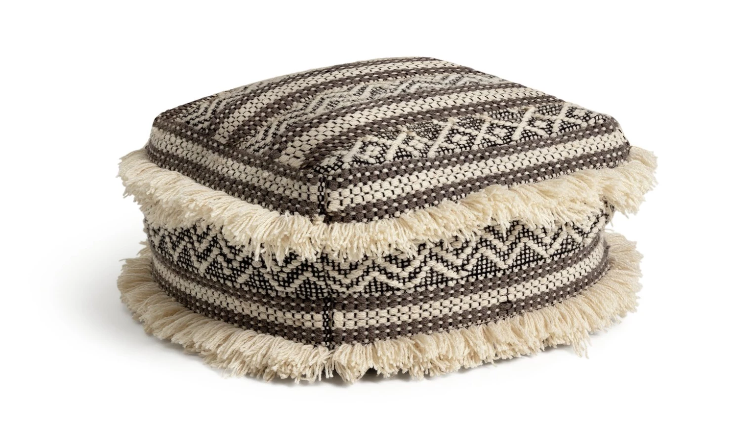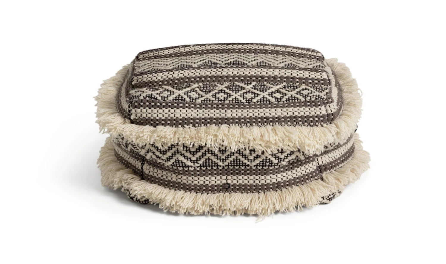Join the feet up club. For fans of artisan-inspired decor, this cube pouffe will add instant character to your home. In a versatile monochrome, the detailed weave design is complemented further by tufted detailing. Crafted from 90% wool and 10% cotton, this Berber-inspired piece is a super-soft and incredibly inviting. Adding a sense of calm and tranquility to your space, this tactile footstool is sure to bring the relaxation. Pop it next to your favourite accent chair for a corner that's full of zen.