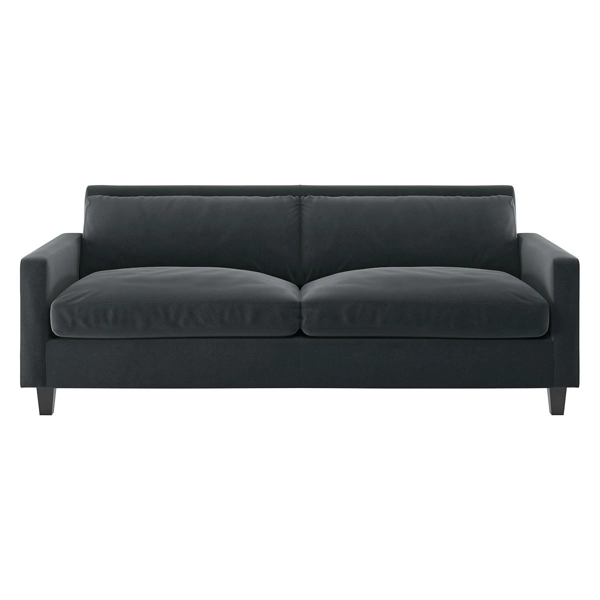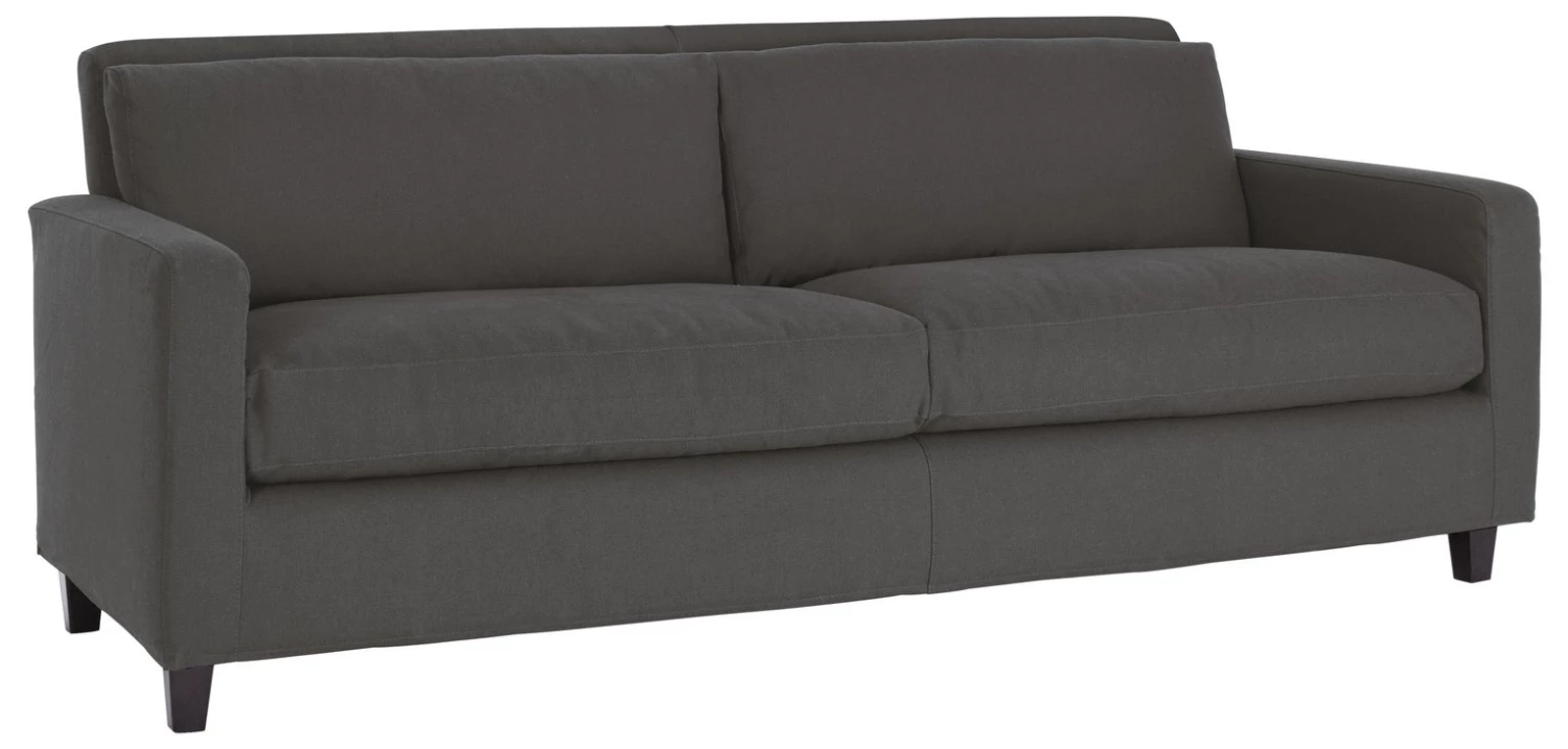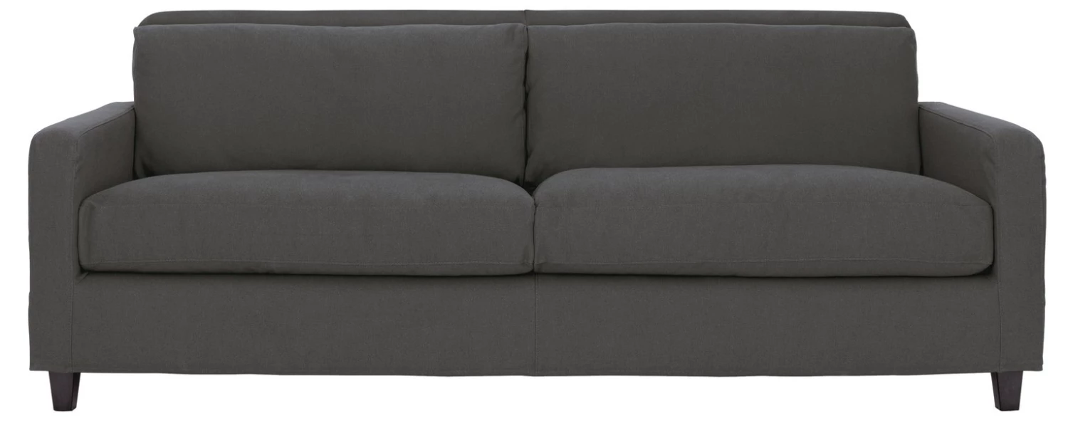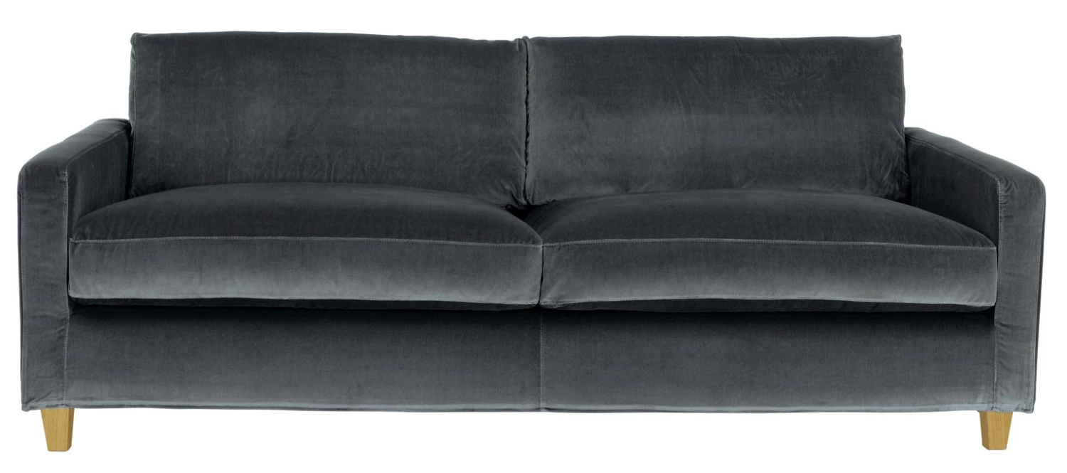Lounge in style with this Italian made Chester charcoal 3 seater sofa, which features a slim profile and a feather and fibre seat cushions, for a classic and timeless look. Designed by Matthew Hilton for Habitat, the sofa is fully upholstered in a removable, durable fabric with dark stained feet. Part of the Habitat bestselling classic Chester sofa range, available in leather and fabric options, in various sizes and colours and with oak stained or dark stained feet.