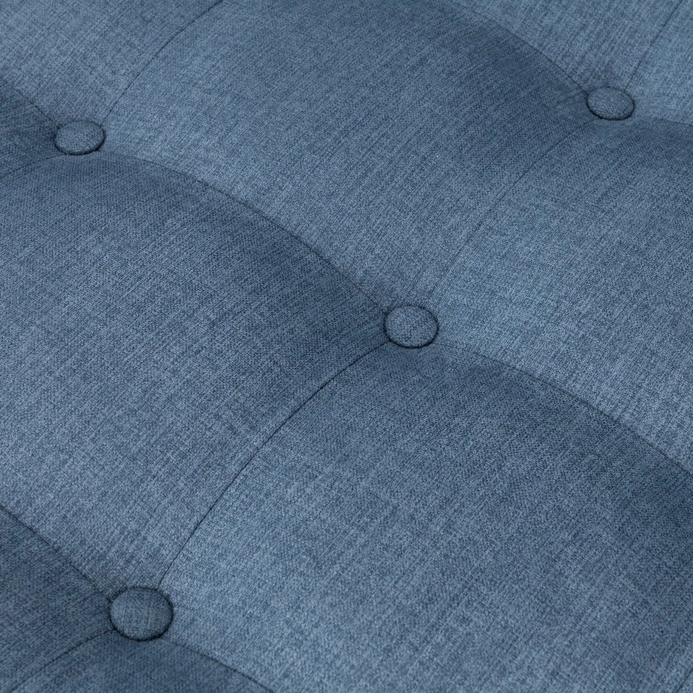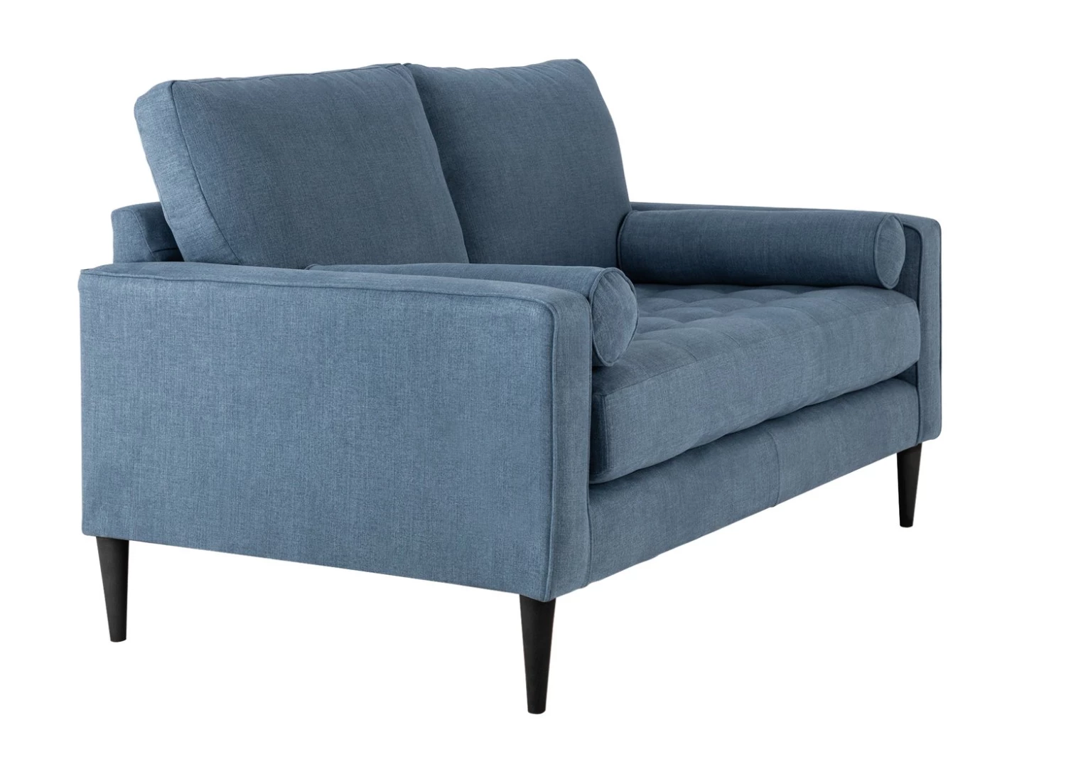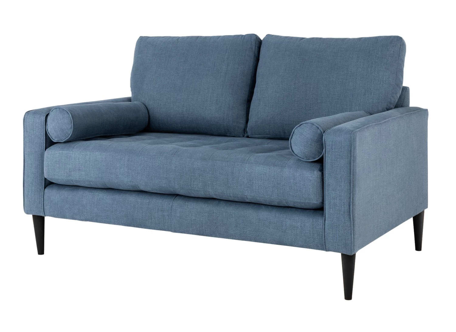 Buttons, bolsters, British. That's our Hudson. This fab 2-seater has a wonderful linnet tone that will create a soothing setting. Its soft-to-touch fabric wows. One of a kind, Hudson is characterised by its buttoned seat and striking bolster cushions. It has a stand-out style that just works. Hudson is raised up on slender wooden feet to give it an elegant edge. Best of British, its manufactured right here in the UK. Bolster up.