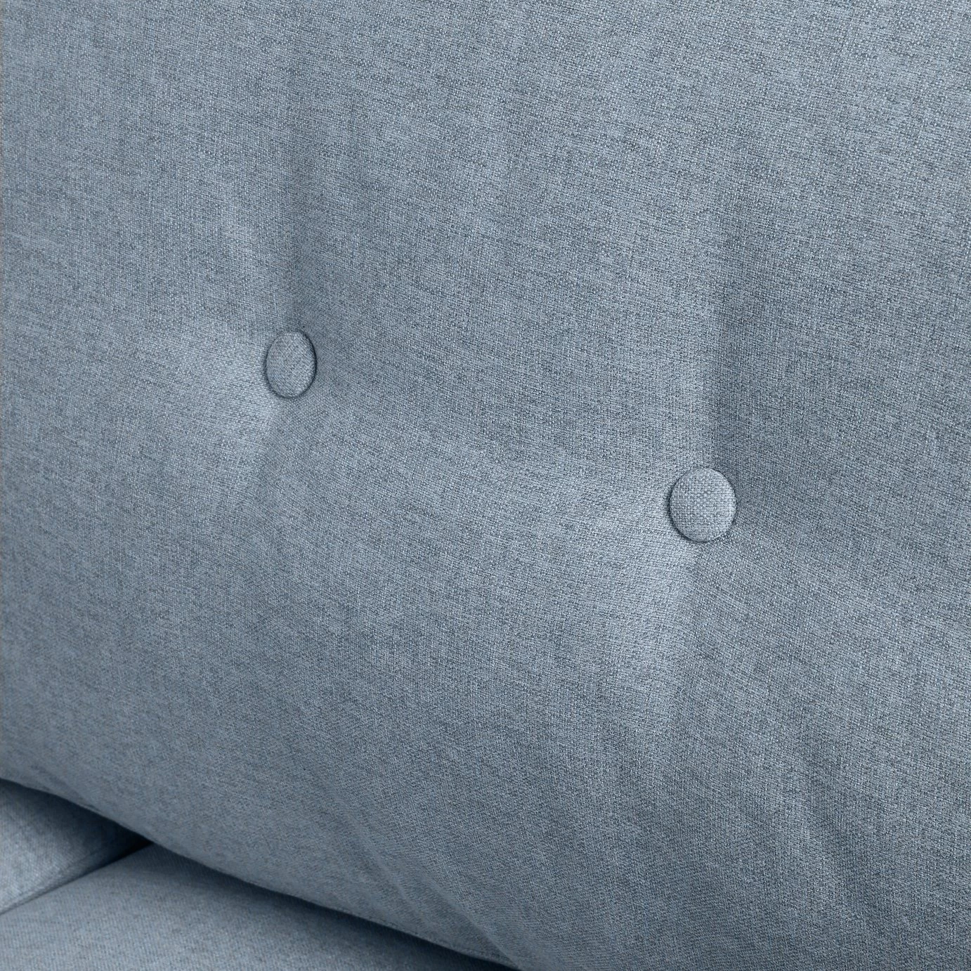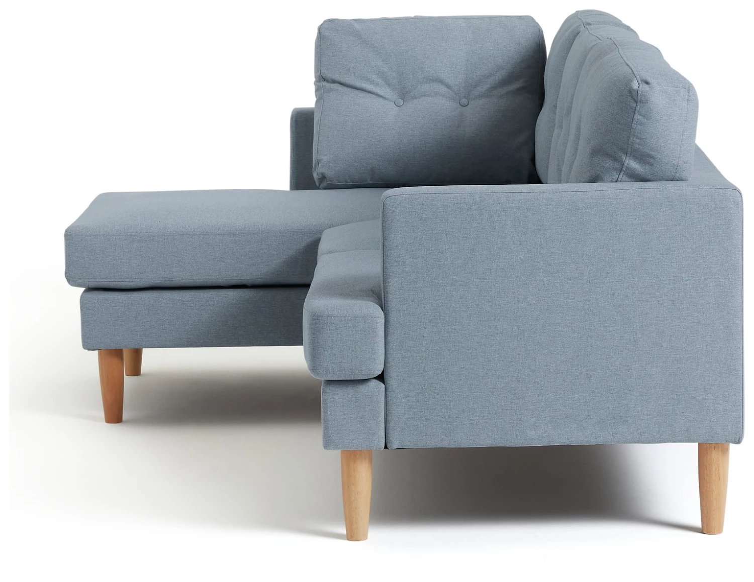 Cosy, comfy in a cool blue hue. This spacious corner sofa is simply a pleasure to sit on. Plump back cushions with smart button detail. Foam filled seat cushions give you just the right amount of softness and support. And there's plenty of room to kick back and unwind. Tapered light wooden legs add the finishing touch to this contemporary couch. Hunker down. Joshua was made for chilling.