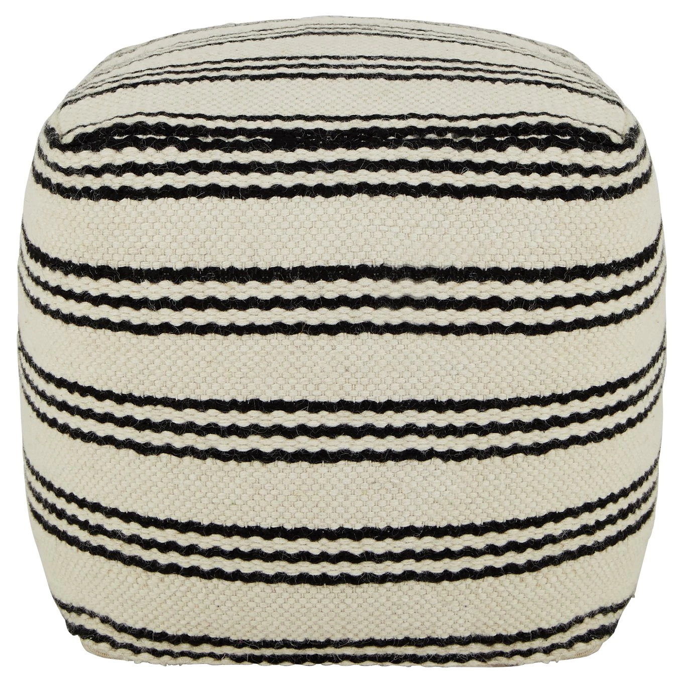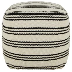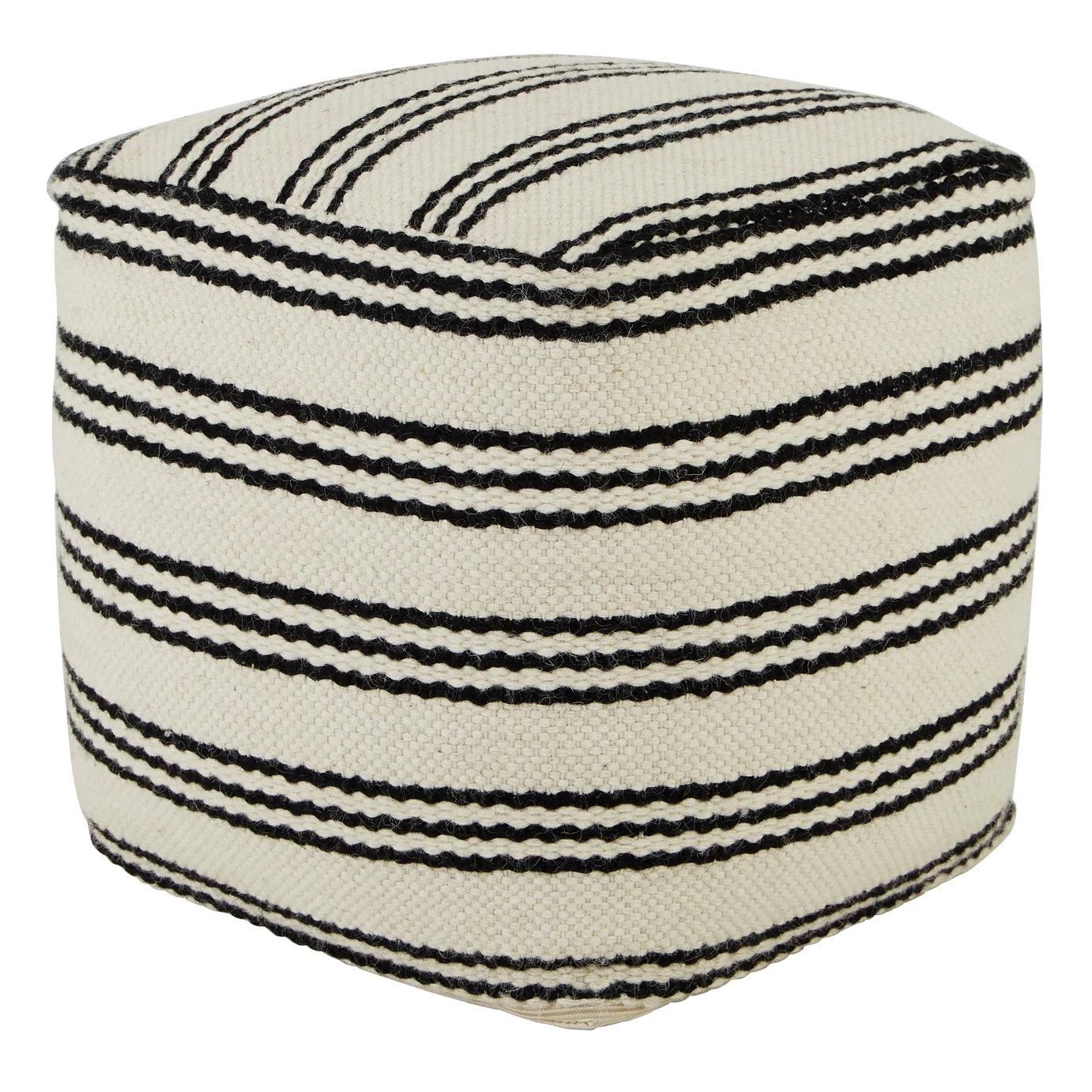 The Layne hand-woven wool pouffe is a striking monochrome-striped design with strong visual appeal and complements both bold and neutral schemes. Filled with lightweight polystyrene beads, the flat weave pouffe provides relaxed additional seating in the home.