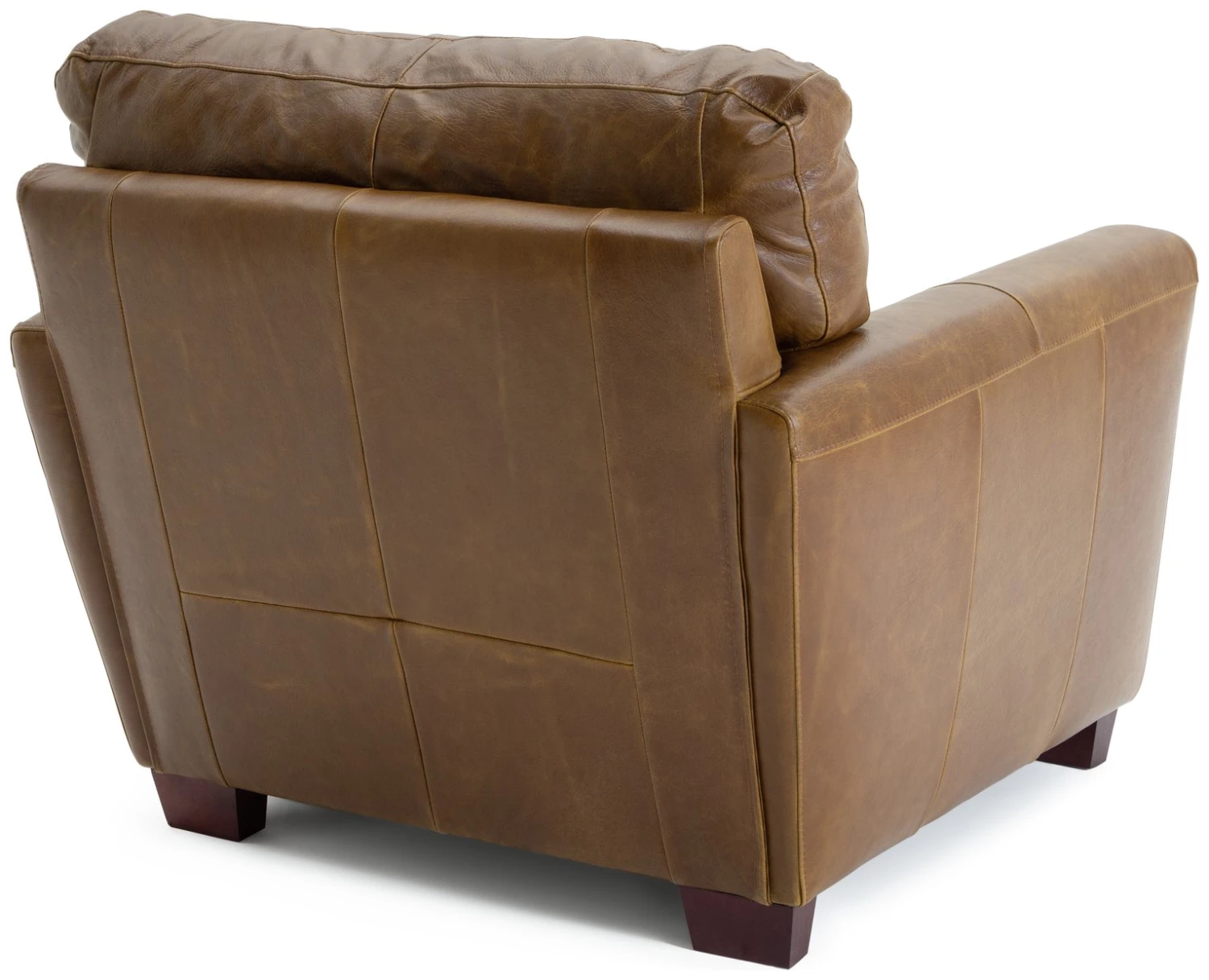 Flop back. Feet up. Our Milford armchair is designed for those who appreciate laid-back living in an ultra-stylish way. Crafted in beautiful Italian tan-coloured leather and raised on wooden legs, you'll be relaxed and curled up in no time at all. The fixed seat cushion is pocket-sprung, and foam filled for maximum comfort. And the back cushion has a soft fibre filling – minimal plumping required. It feels so good to be home!