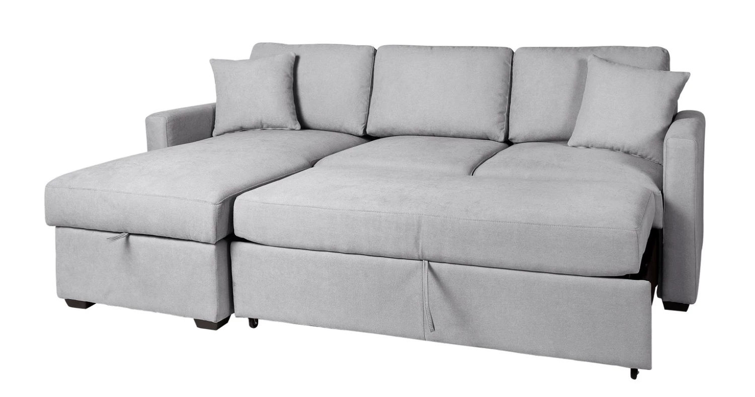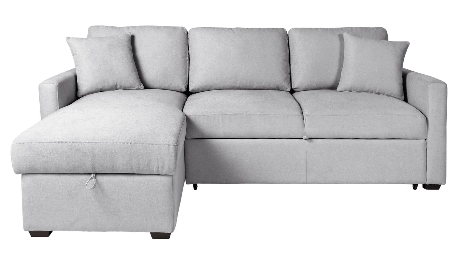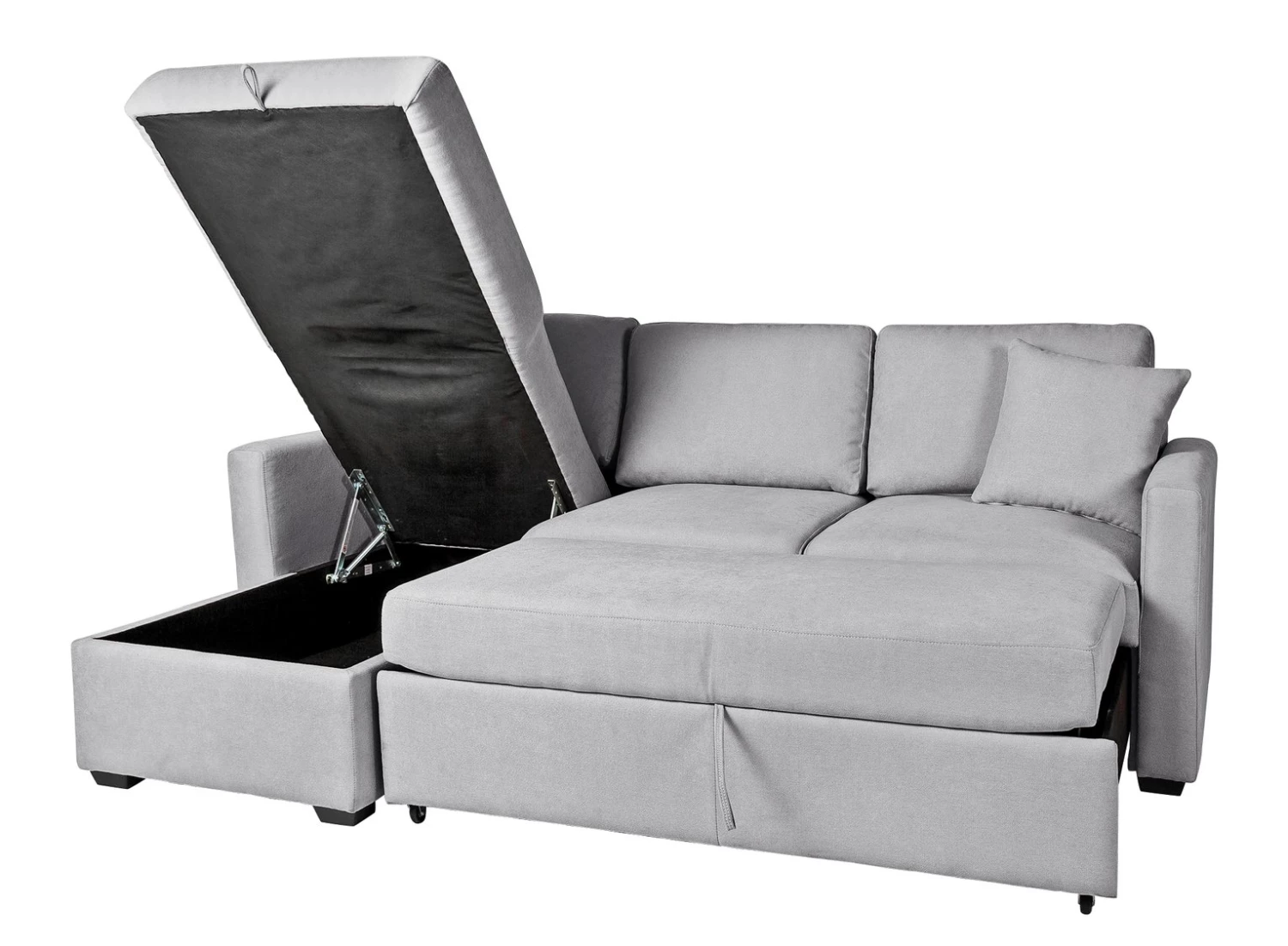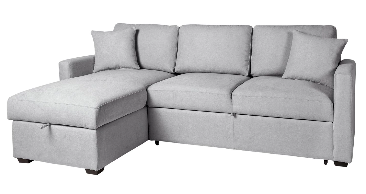 Smart lines, simple styling and handy storage space. There's a lot of reasons to love Reagan. This corner sofa bed from Habitat has a left-hand chaise design, ideal for lounging. It makes a great divide between the lounge and kitchen of an open floor plan.