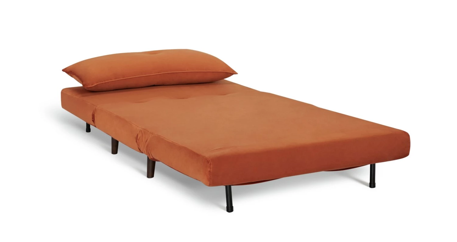 Short on space? With Roma we have both sitting and sleeping covered. Add a seating area and a guest bed all in one go. If a family member needs a place to crash, you'll be guest-ready. Roma looks every bit Habitat designed. Is it that orange fabric? Or maybe those angled wooden feet?