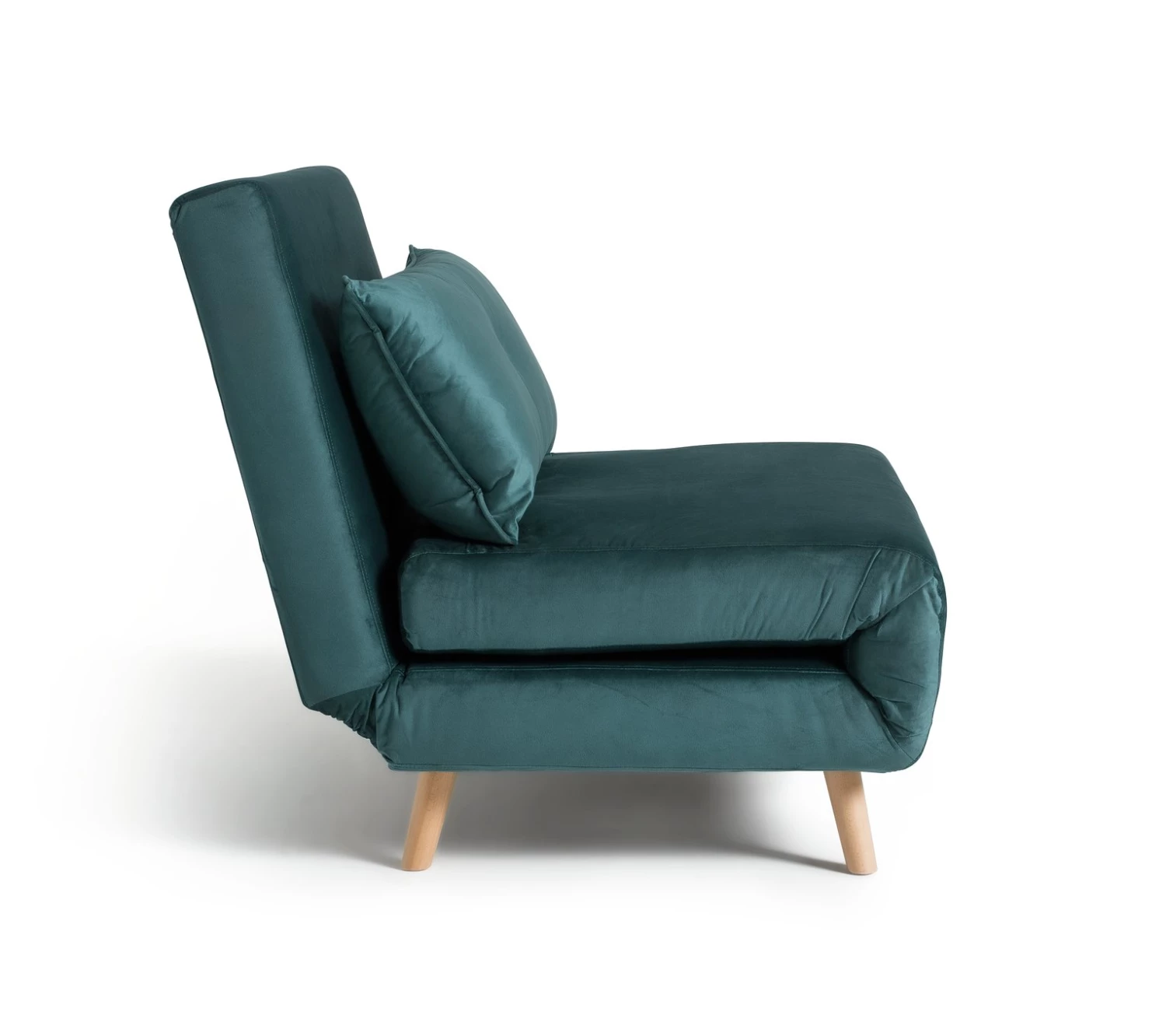 Short on space? With Roma we have both sitting and sleeping covered. Add a seating area and a guest bed all in one go. If a family member needs a place to crash, you'll be guest-ready. Roma looks every bit Habitat designed. Is it that teal fabric? Or maybe those angled wooden feet?