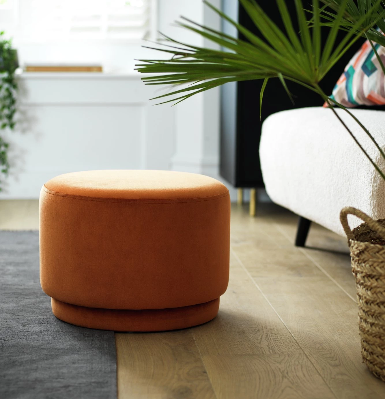 A place for your feet or an extra seat? Our elegant deep rich velvet footstool is softly curvaceous and comfortably convenient. Clean seam detail combined with the concentric upholstered base adds to its graceful aesthetic. Stretch out, sit down, or simply admire.