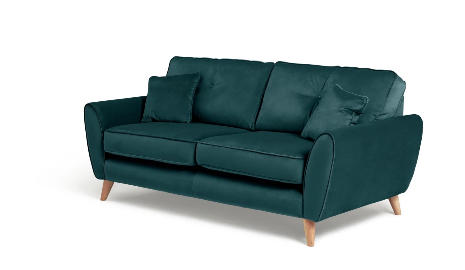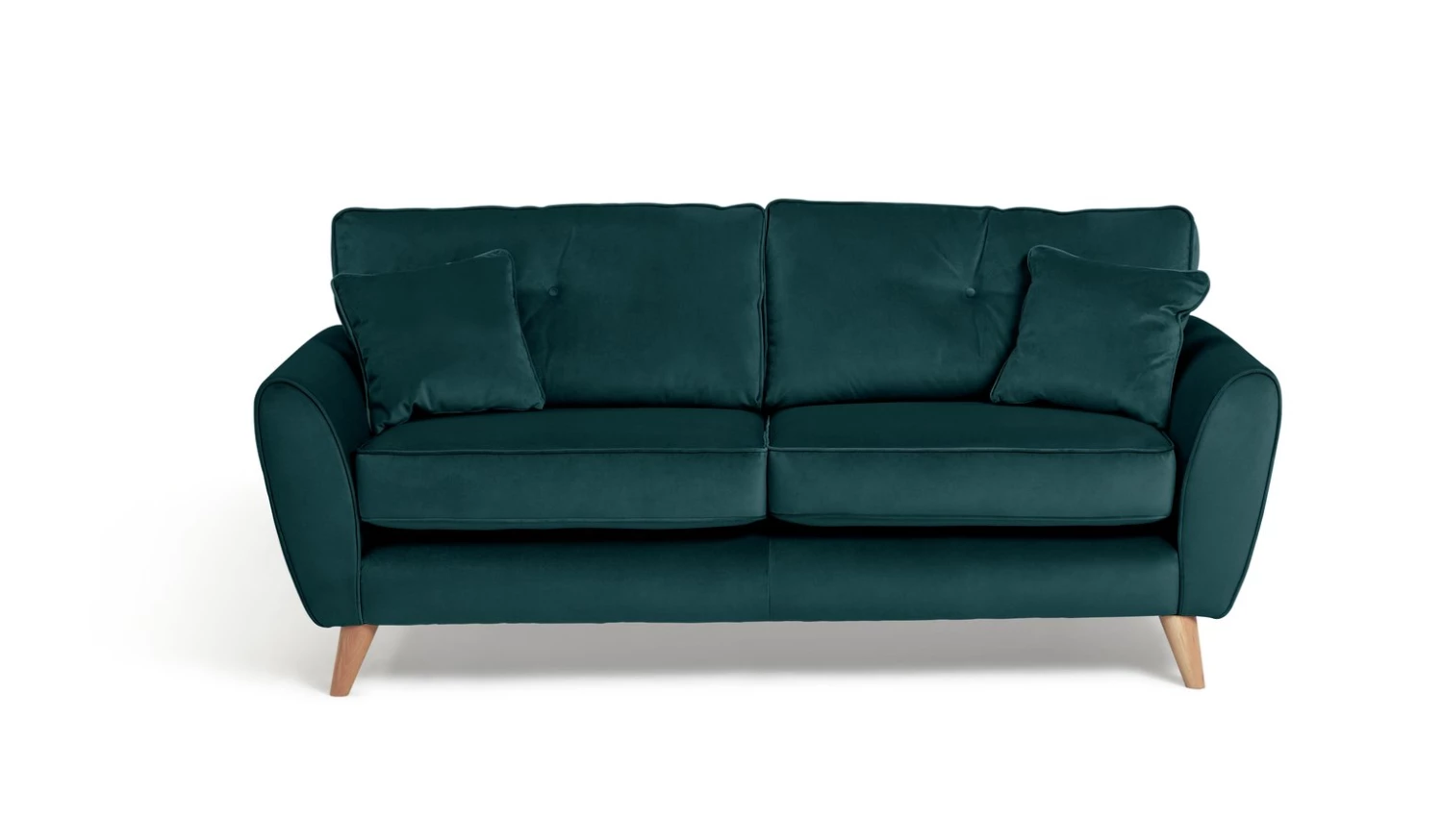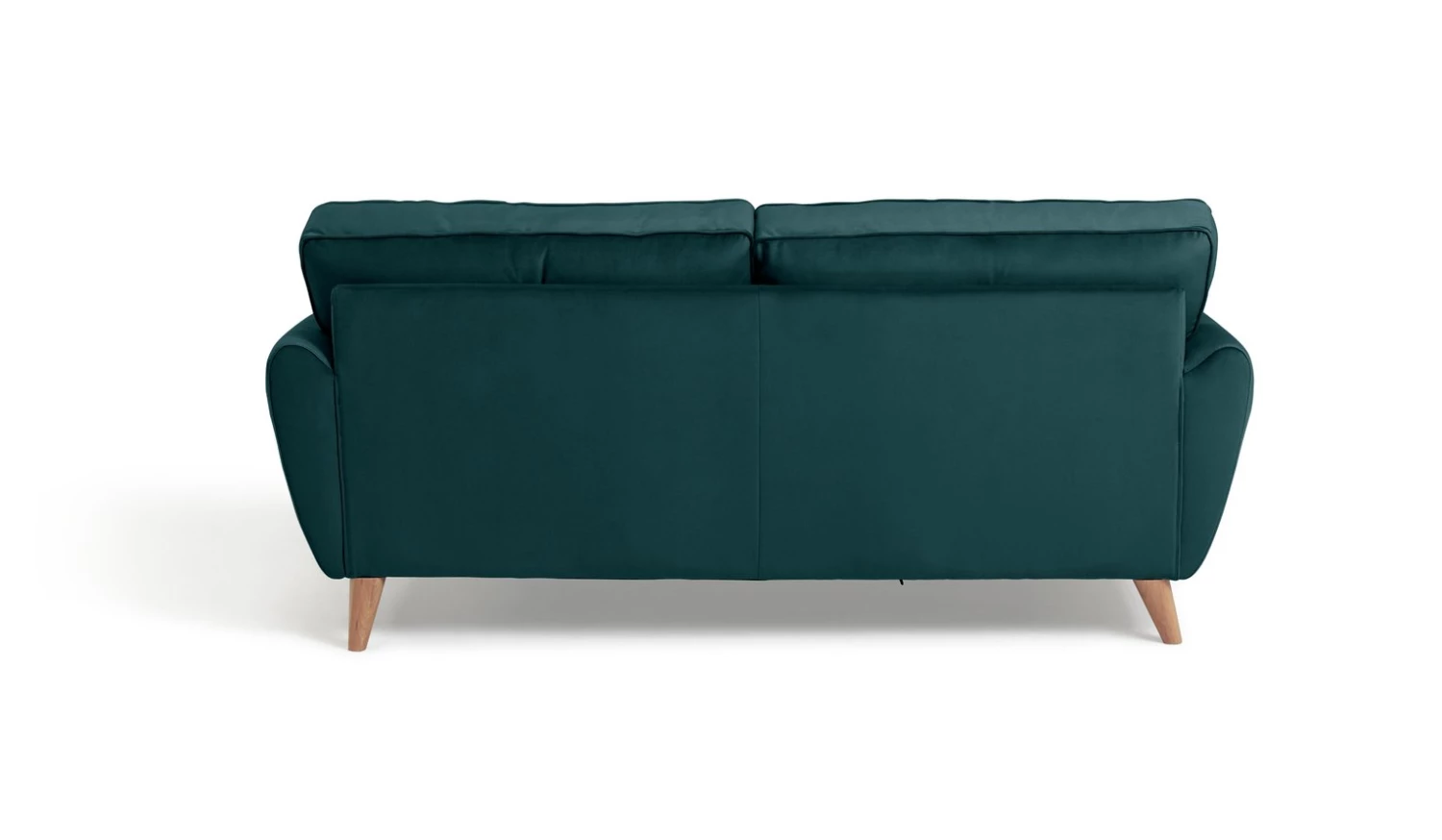Elegant and snuggly soft, that's Isla. Our irresistible 3-seater sofa is designed with mid-century modern comfort in mind. Just look at those clean curves and traditional button details. Retro, right? While tapered, slim wooden legs lend a contemporary edge. Upholstered in 100% velvet, its smooth texture and tasteful teal tones bring a luxe, romantic touch to your living room. A sofa that feels just as good as it looks.