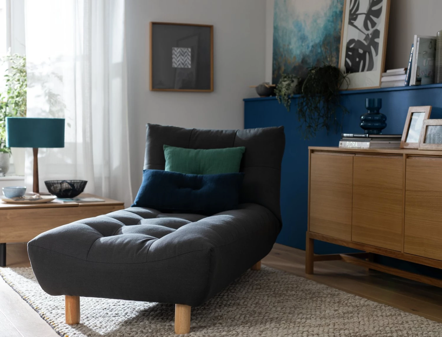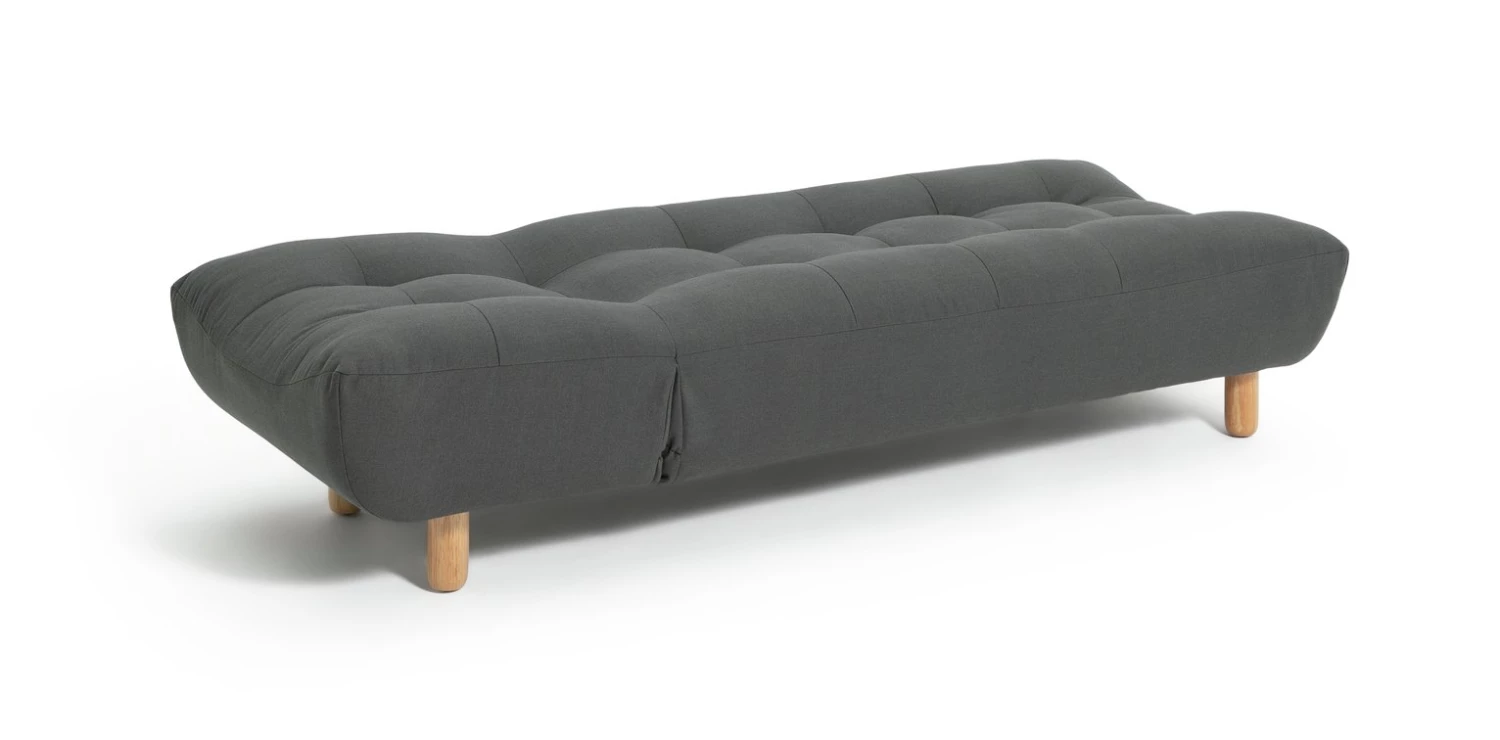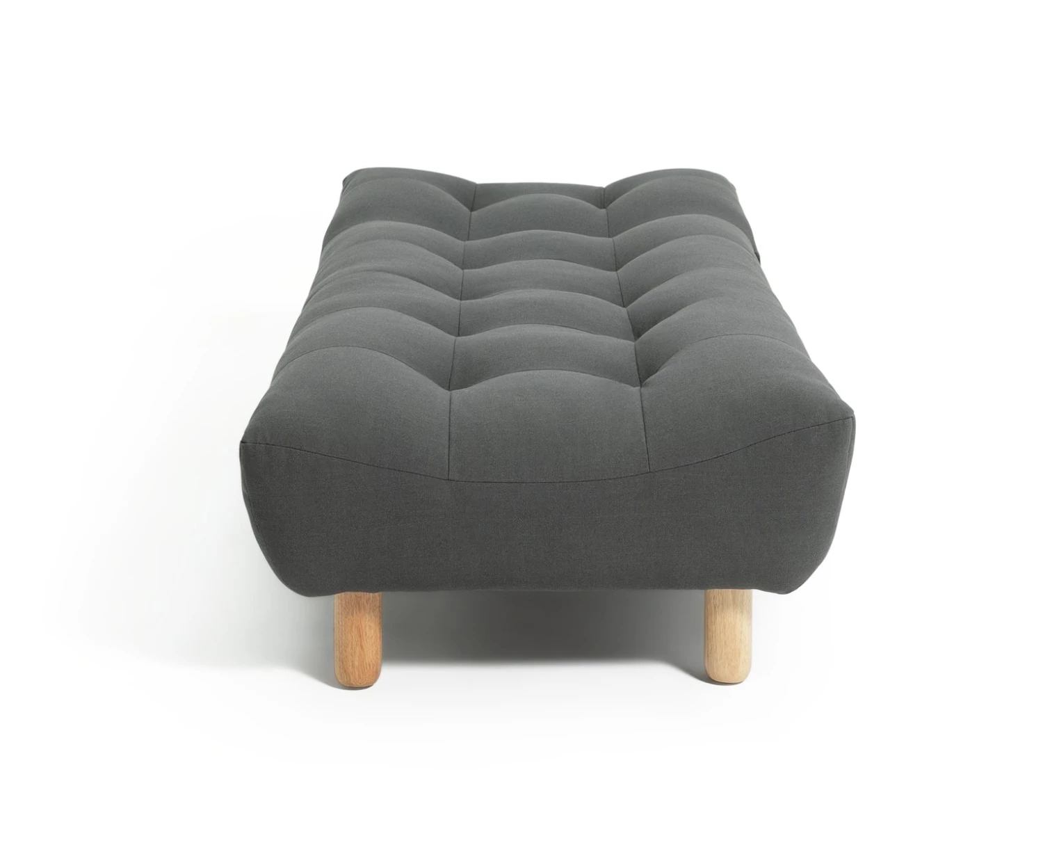 Laze in luxury. Our grey chaise sofa is made for relaxing in the lounge or bedroom. Upholstered in 100% fabric, it's decadently soft to touch. The dimpled curves, tufting detail and rounded wooden feet give it a real contemporary feel. And the foam filling is uber inviting. Raise the reclining end to chill in comfort or lower it and stretch out for a nap. Makes a handy bed for unexpected guests too. Get ready for a laid-back day kind of day.