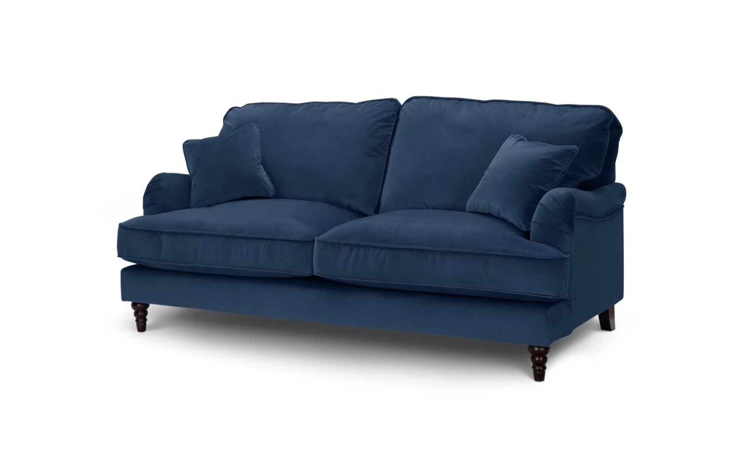 A fresh take on a classic look. Matilda is a vintage-inspired beauty. She sits effortlessly on top her turned wooden feet, sporting sumptuous cushions that beckon you to sink into. Matilda's soft blue velvet looks amazing, feels amazing. The devil is in the detail with this sofa. There's the piped edging, the intricate ruched-effect folds and the gentle sweeping curve of the low arms.