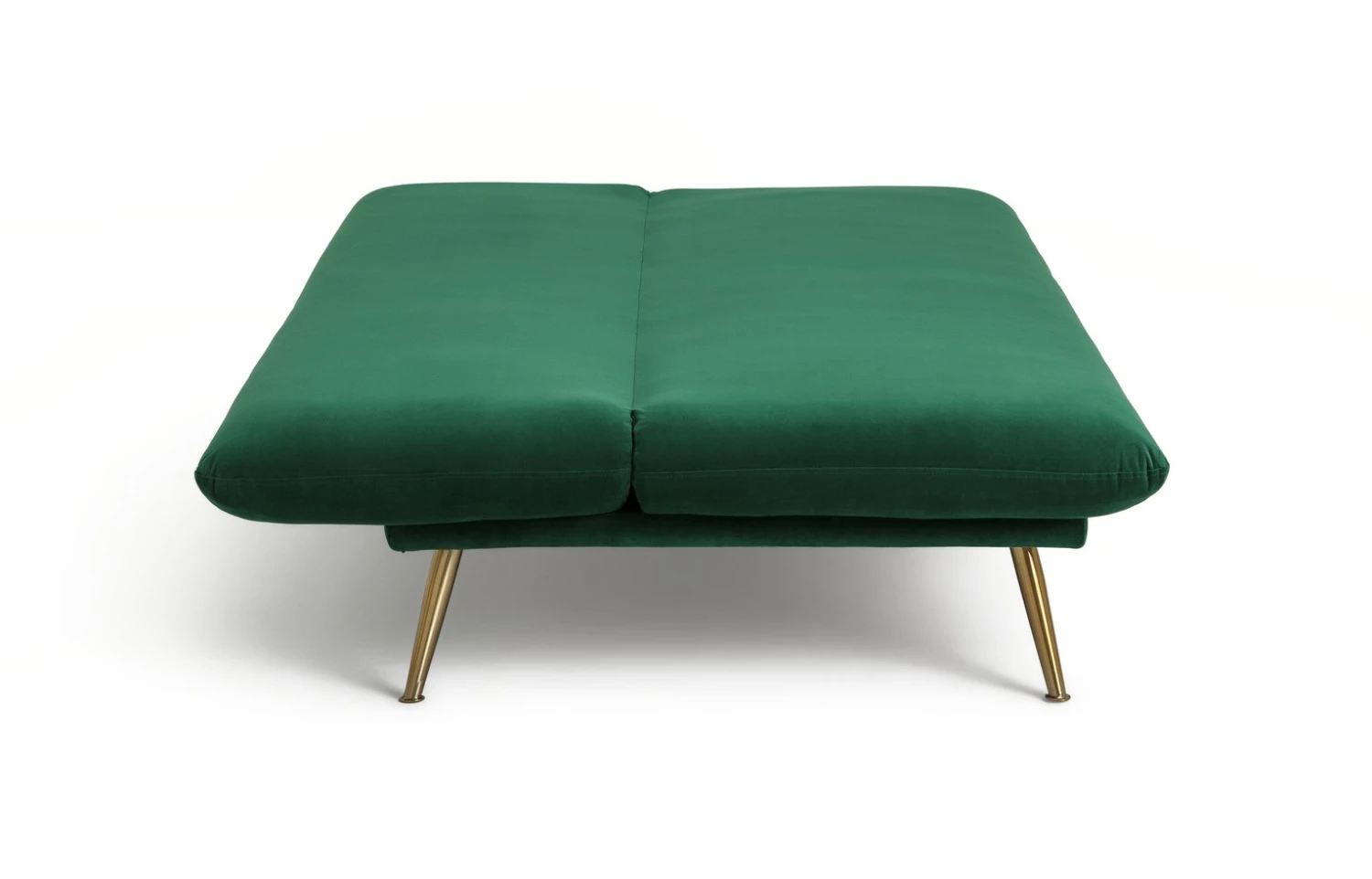 Unexpected overnight guest? Don't panic, the Habitat Matteo sofa bed will come to your rescue. It makes the perfect sofa turned sleep-space, to give you the best of both worlds. Crafted from exceptional materials, Matteo is a stunning choice. Dramatic green velvet fabric perches on splayed golden metal legs. A glamorous combination and so smart. One eye catching piece.