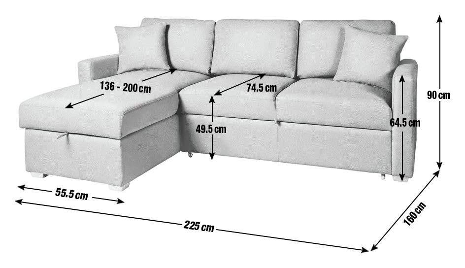 It comes complete with scatter cushions and opens out easily when you have guests to stay. Then simply lift the chaise end to reveal hidden storage space to tuck away blankets, bedding or any living room clutter you want out of sight.