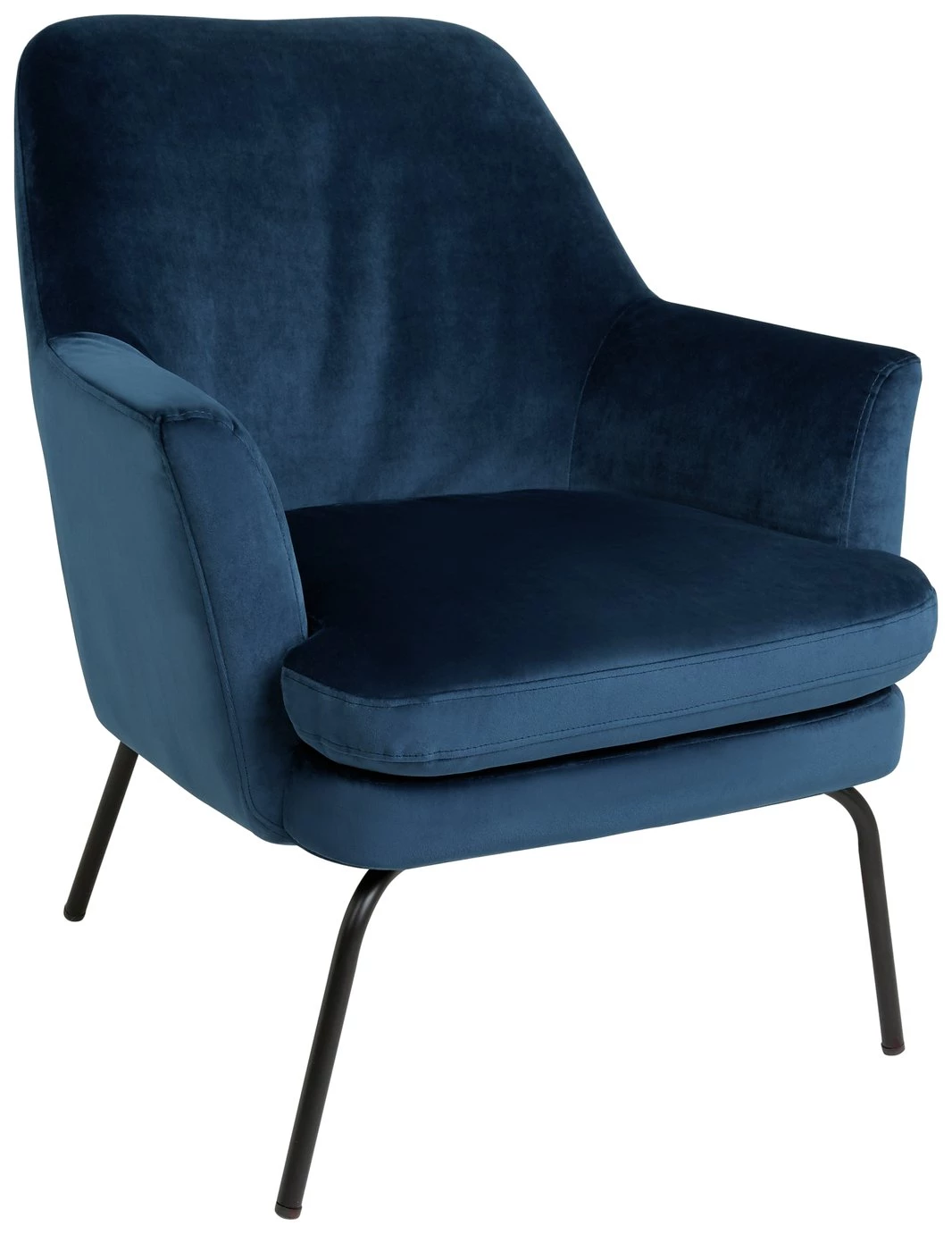 Original designs at suprisingly affordable prices. Designed by interiors brand Habitat, the Celine navy velvet armchair is a contemporary design that's perfect for small spaces. With a high reclined back, gentle round edges and foam-filled seat cushion padding, this armchair is as comfortable as it looks and is finished with black metal legs. Upholstered in durable polyester, this chair is part of the Celine collection and available in other colours.
