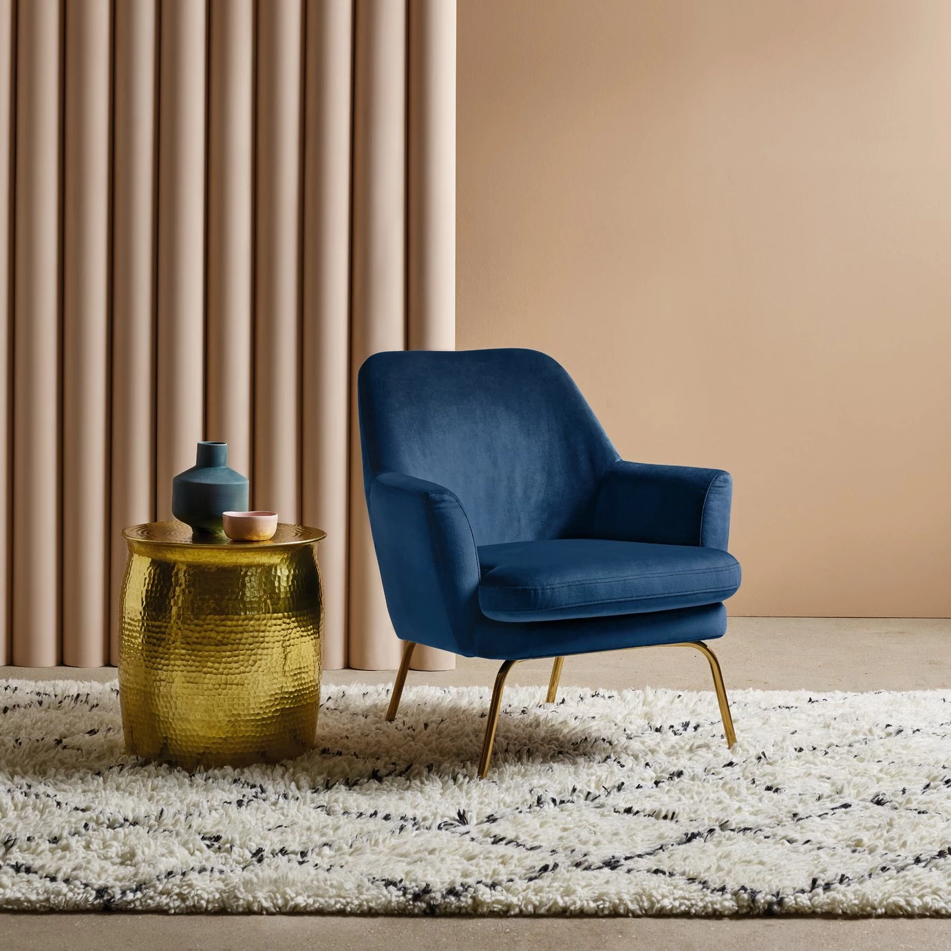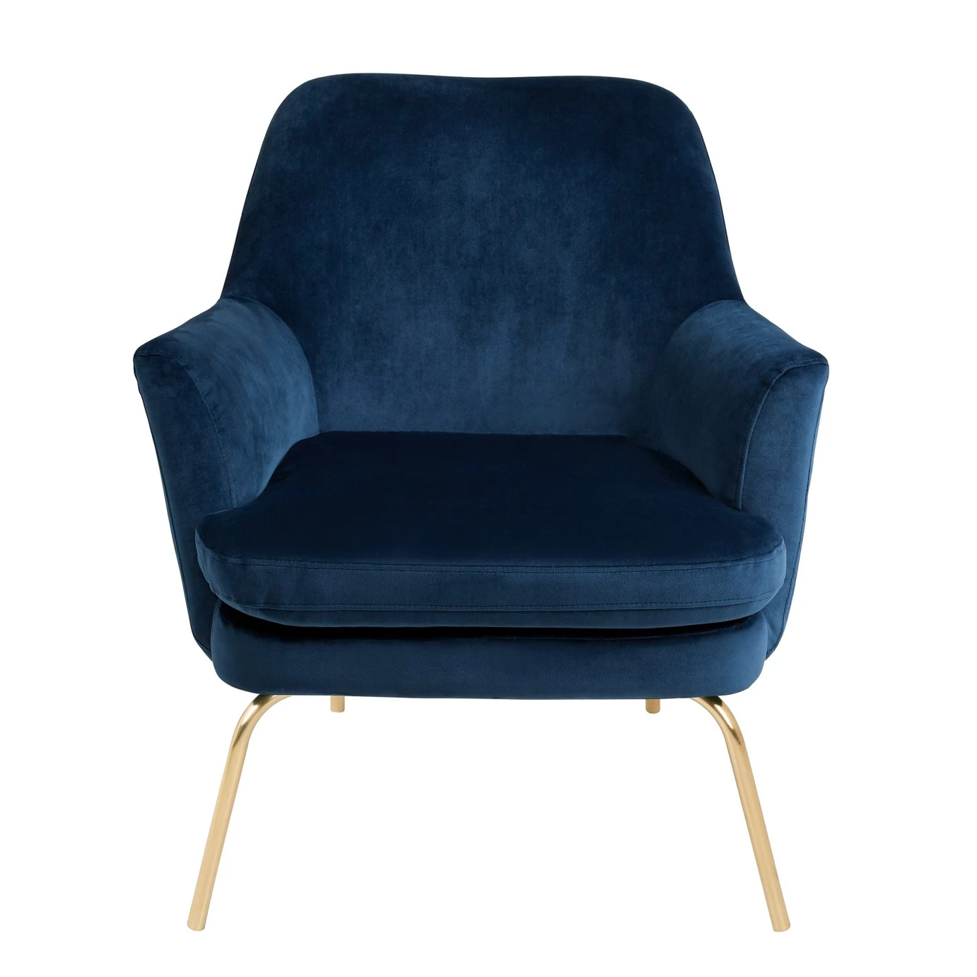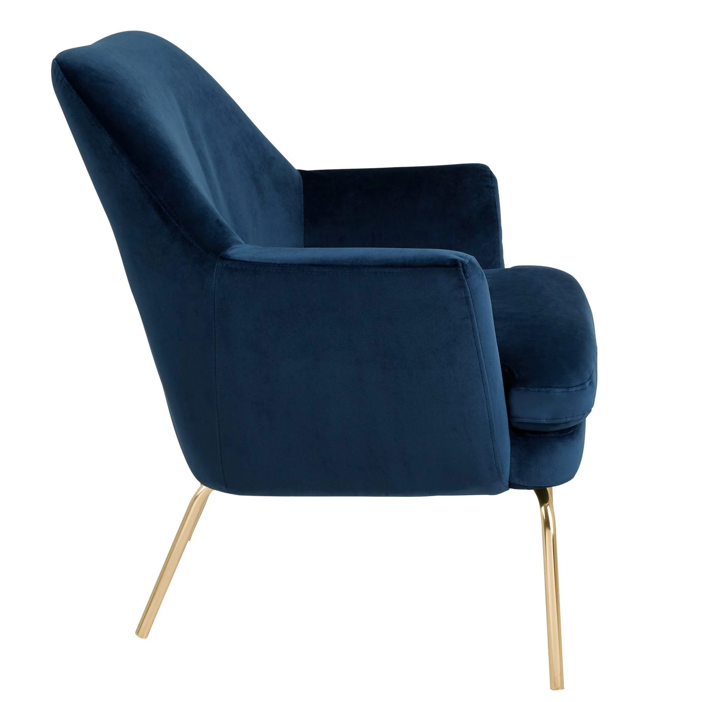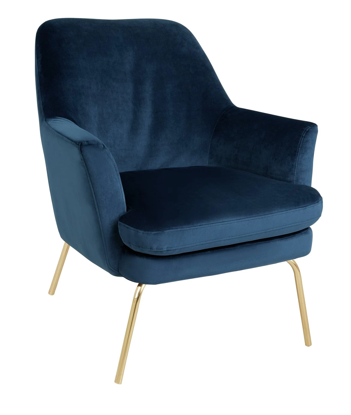 With its gentle round edges, high reclined back and sumptuous padding, the foam-filled seat cushion invites you to relax and wind down in style. This elegant and luxurious design is finished with brass metal legs for a contemporary, lighter-than-air look, which makes it ideal for smaller spaces. Exclusive to Habitat and available in a choice of colours, the Celine chair is upholstered in durable polyester velvet and its seat cushion has piping to maintain its clean edge.