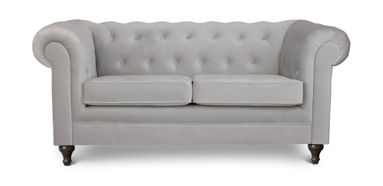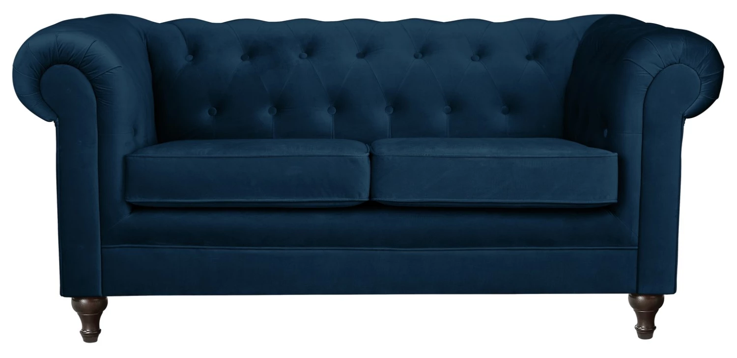An iconic piece. Classic and timeless, the Habitat Chesterfield 2-seater sofa boasts a scroll arm design with sumptuous deep buttoning on the back panel and arms. It's beautifully upholstered in a velvet-effect fabric for a truly luxurious feel. It stands on real wood feet for the perfect finishing touch.