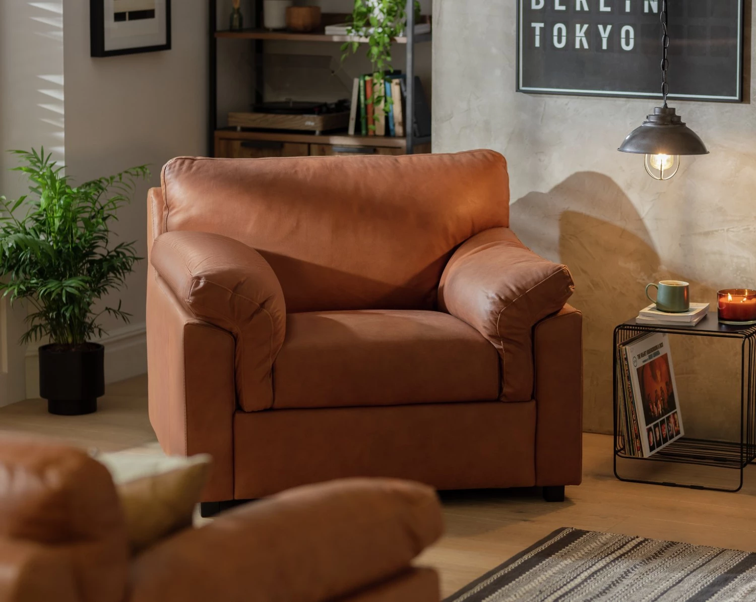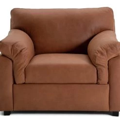 Lounge in luxury. Our sumptuous armchair in tan is the best seat in the house. Crafted from exquisitely full aniline nubuck and set on solid wood feet, it's made for relaxing. Sink into its cosy, pocket sprung with foam and dacron wrap cushions, plush armrests and supportive backrest after a long day. Minimal plumping required. Movie marathon or curling up with a book? This comfy seat has your back.