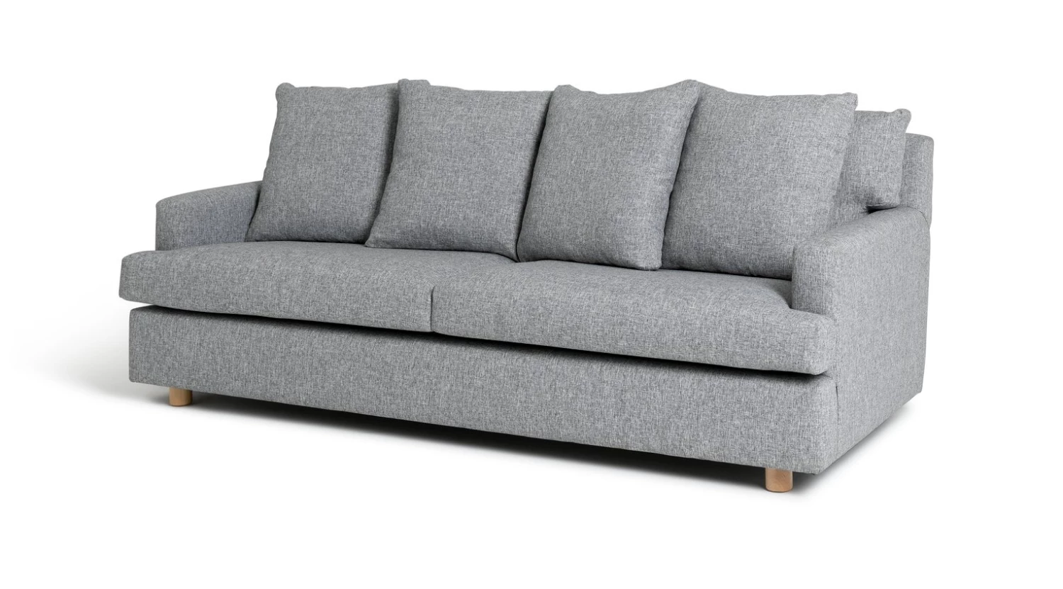 Smart, modern and totally relaxed. Lounge in luxury on our 3-seater Lana sofa. It's cool contemporary design deserves to take centre stage. The reversible deep sit T-cushions give you ample space to curl up. The fibre filled back cushions are sumptuously supportive. Plus this large grey sofa comes with extra cushions for even more cuddly comfort. Arrives fully assembled, just pop on the wooden feet and chill.