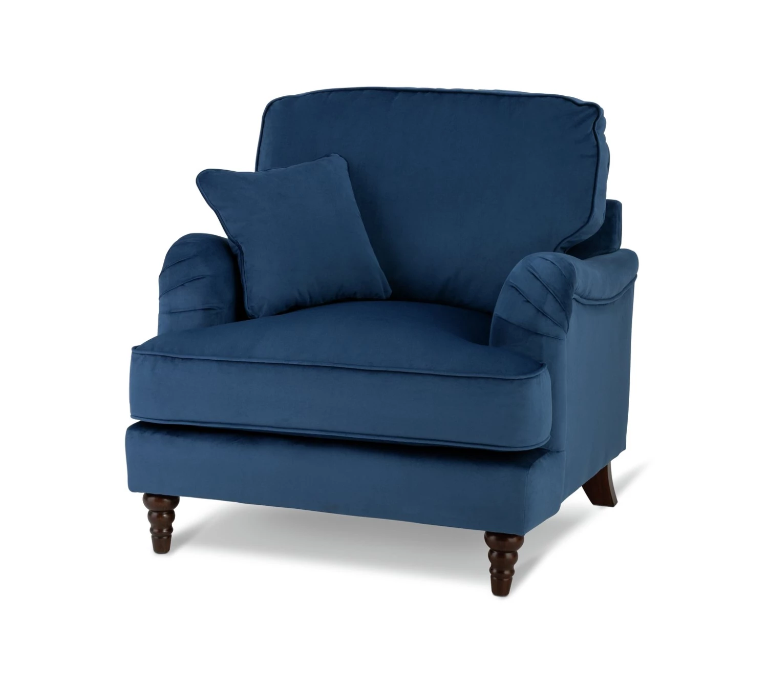 A fresh take on a classic look. Matilda is a vintage-inspired beauty. She sits effortlessly on top her turned wooden feet, sporting sumptuous cushions that beckon you to sink into. Matilda's soft blue velvet looks amazing, feels amazing. The devil is in the detail with this sofa. There's the piped edging, the intricate ruched-effect folds and the gentle sweeping curve of the low arms.