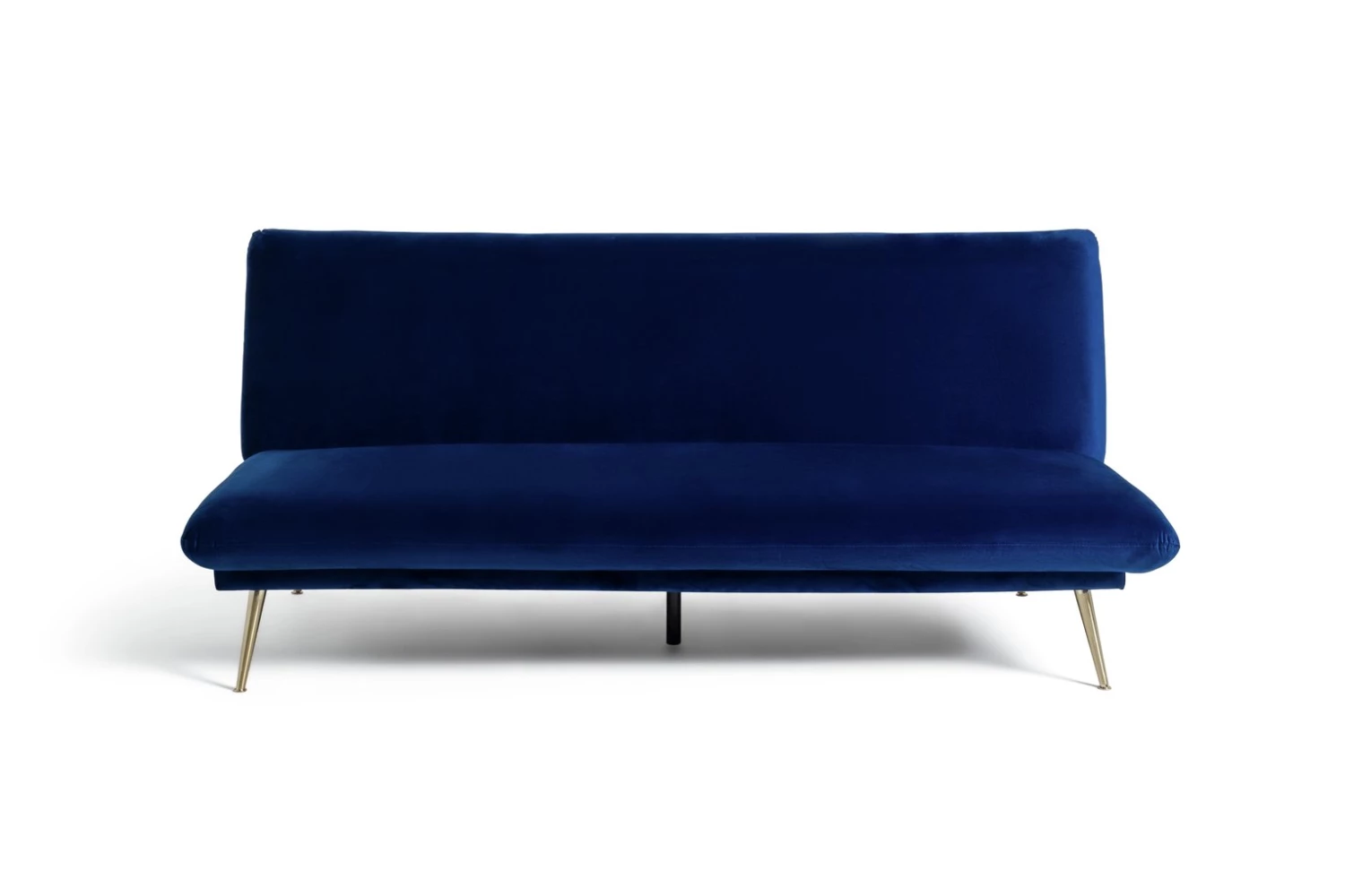 Unexpected overnight guest? Don't panic, the Habitat Matteo sofa bed will come to your rescue. It makes the perfect sofa turned sleep-space, to give you the best of both worlds. Crafted from exceptional materials, Matteo is a stunning choice. Dramatic blue velvet fabric perches on splayed golden metal legs. A glamorous combination and so smart. One eye catching piece.