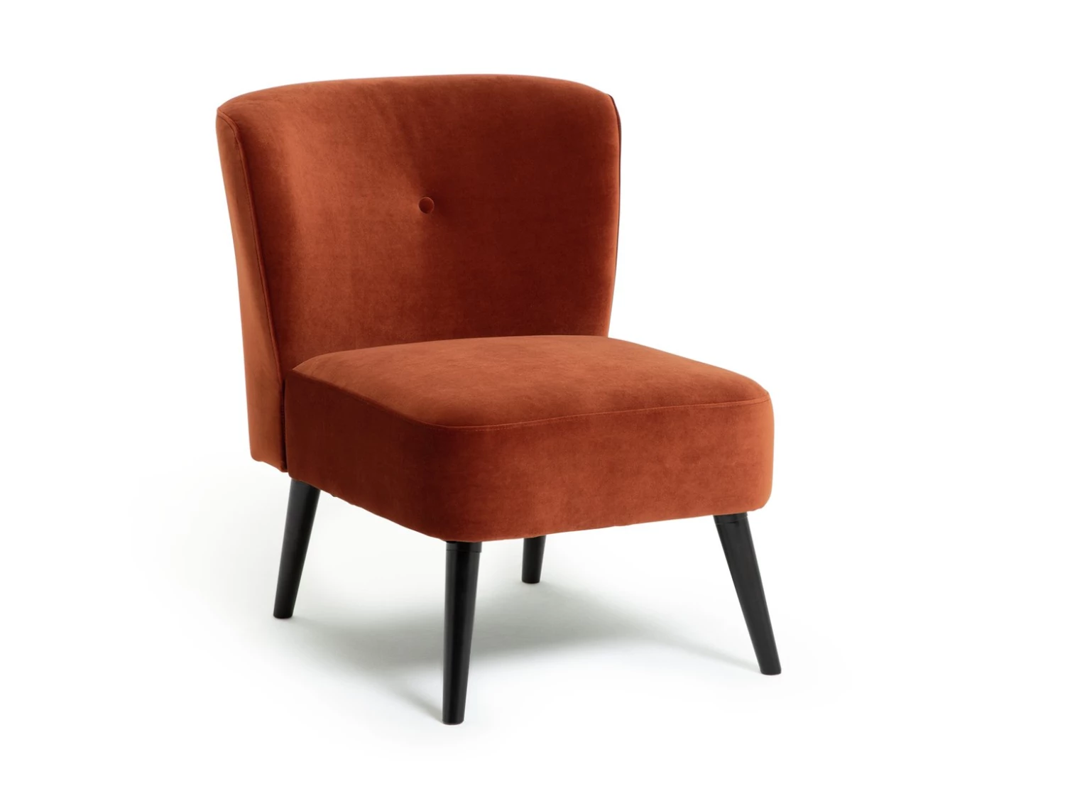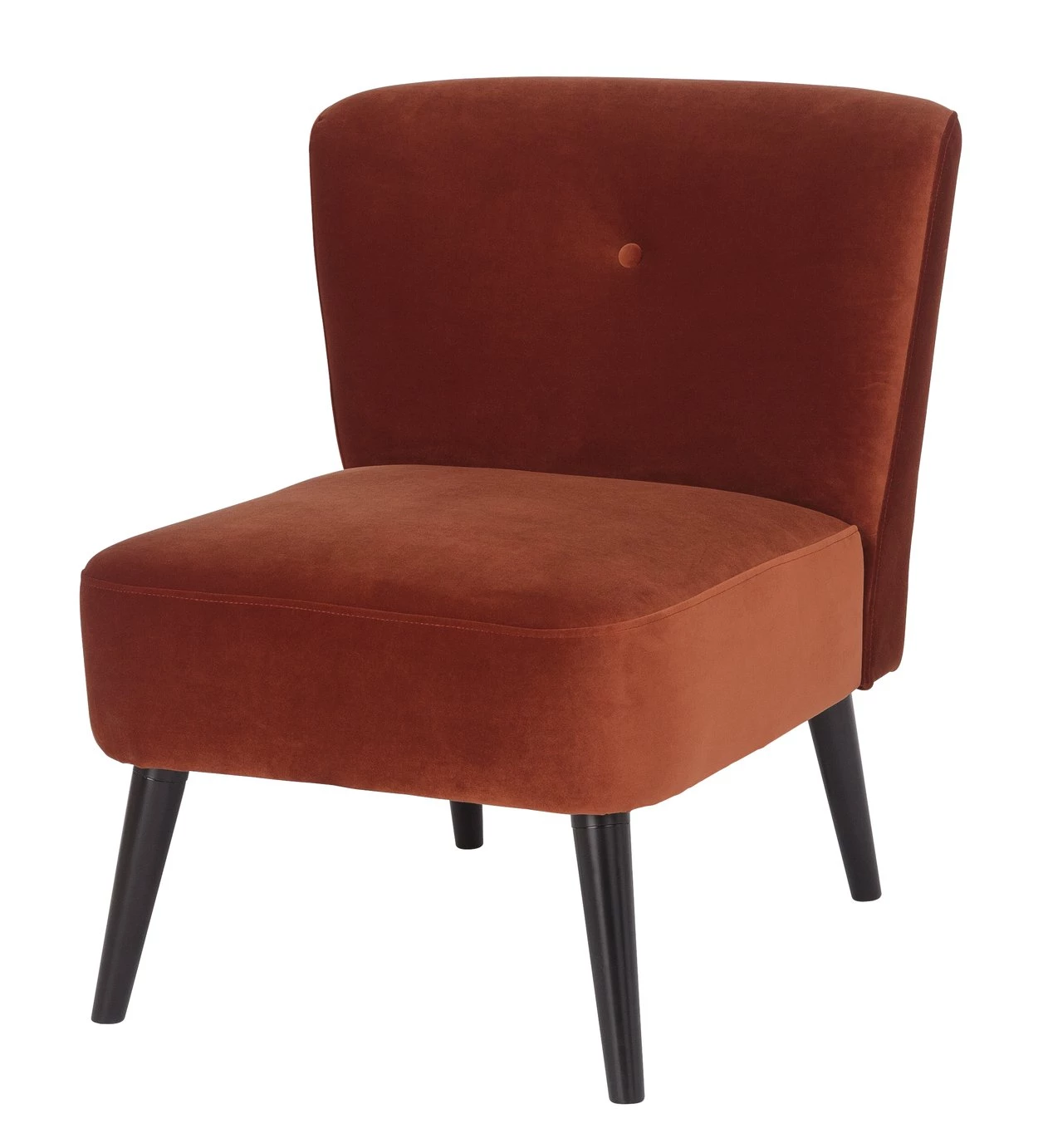 Try a little texture with Merlot. Not only a wonderful additional seat, it also makes a delightful decorative piece for an empty nook. Its sumptuous orange fabric offers modern charm. With a centre button back and slender black legs, Merlot delivers a huge helping of character and style. Grab a warm blanket and a good book; Merlot is the perfect place for some me-time.
