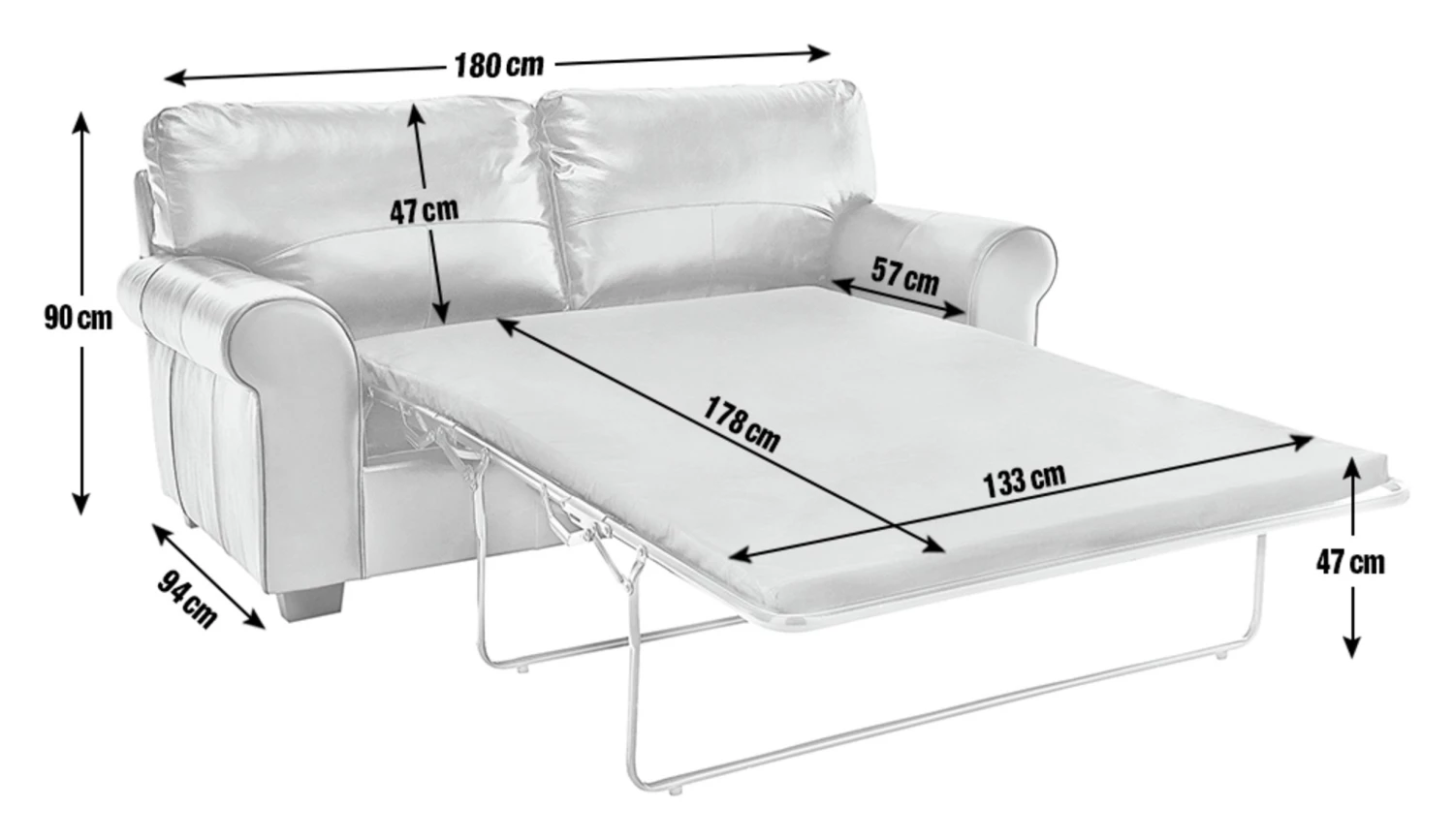 - Sofa size H90, W180, D94cm (Depth as bed 189cm).