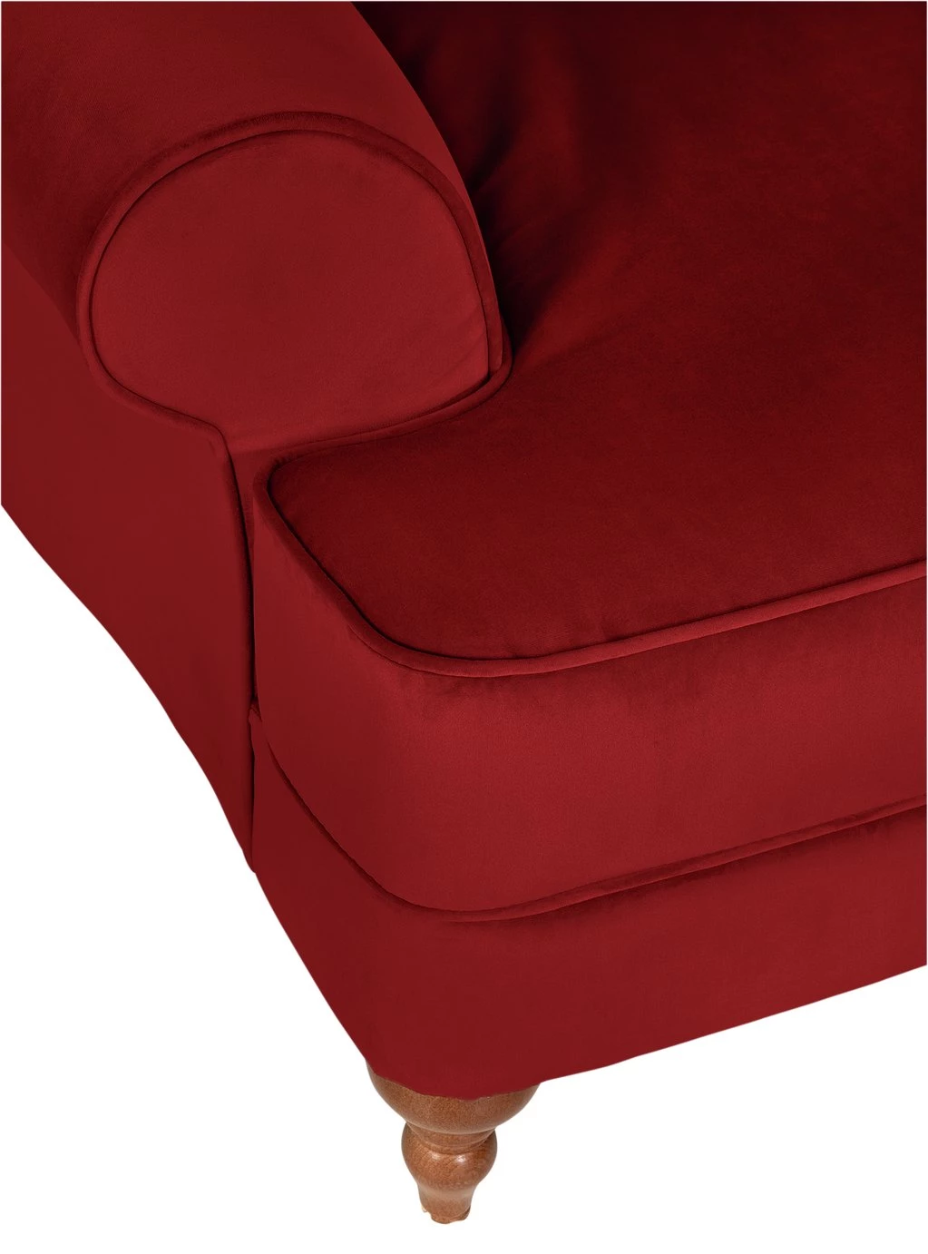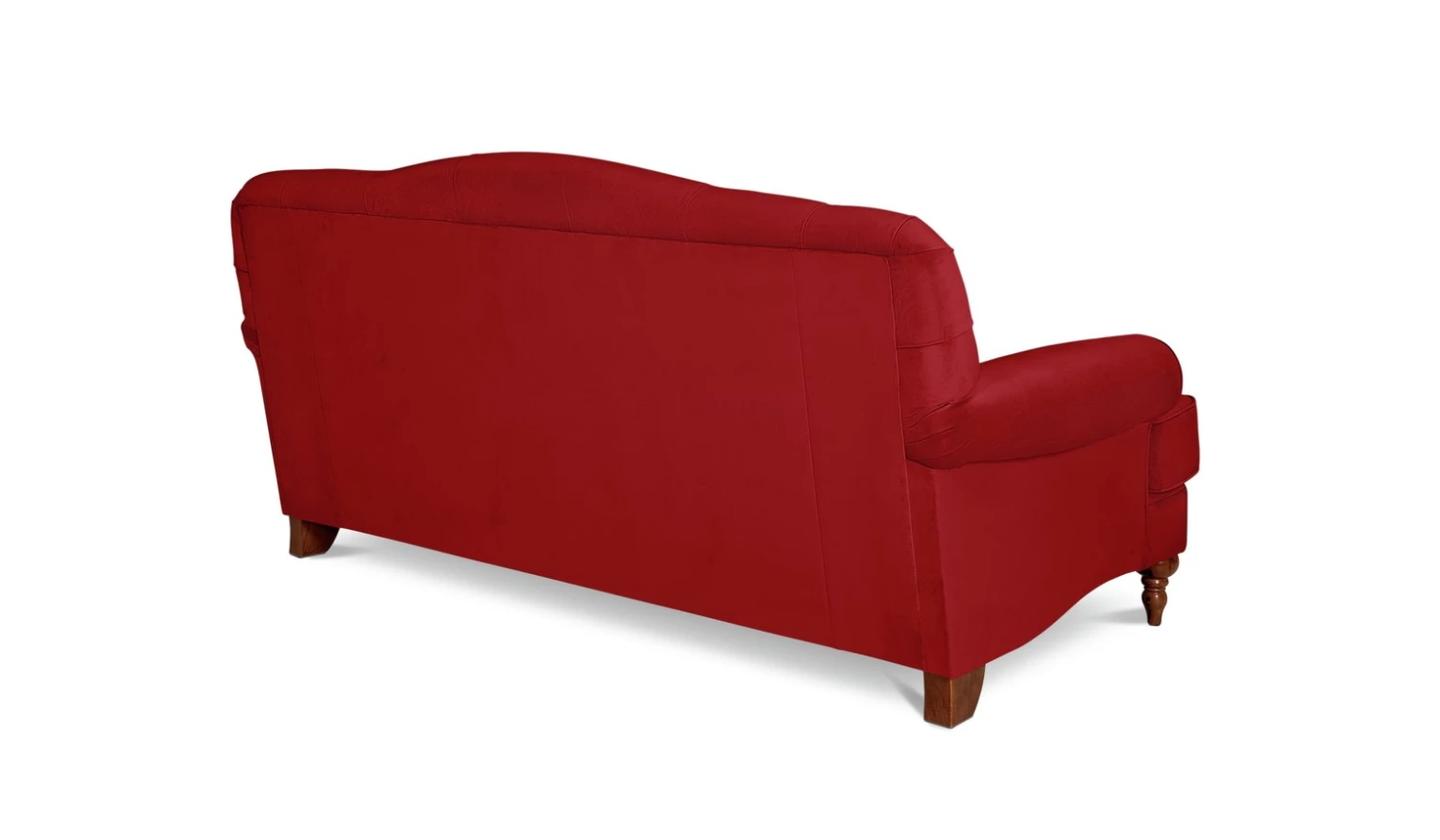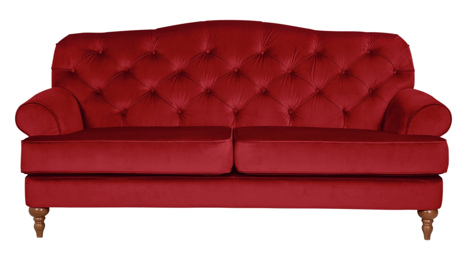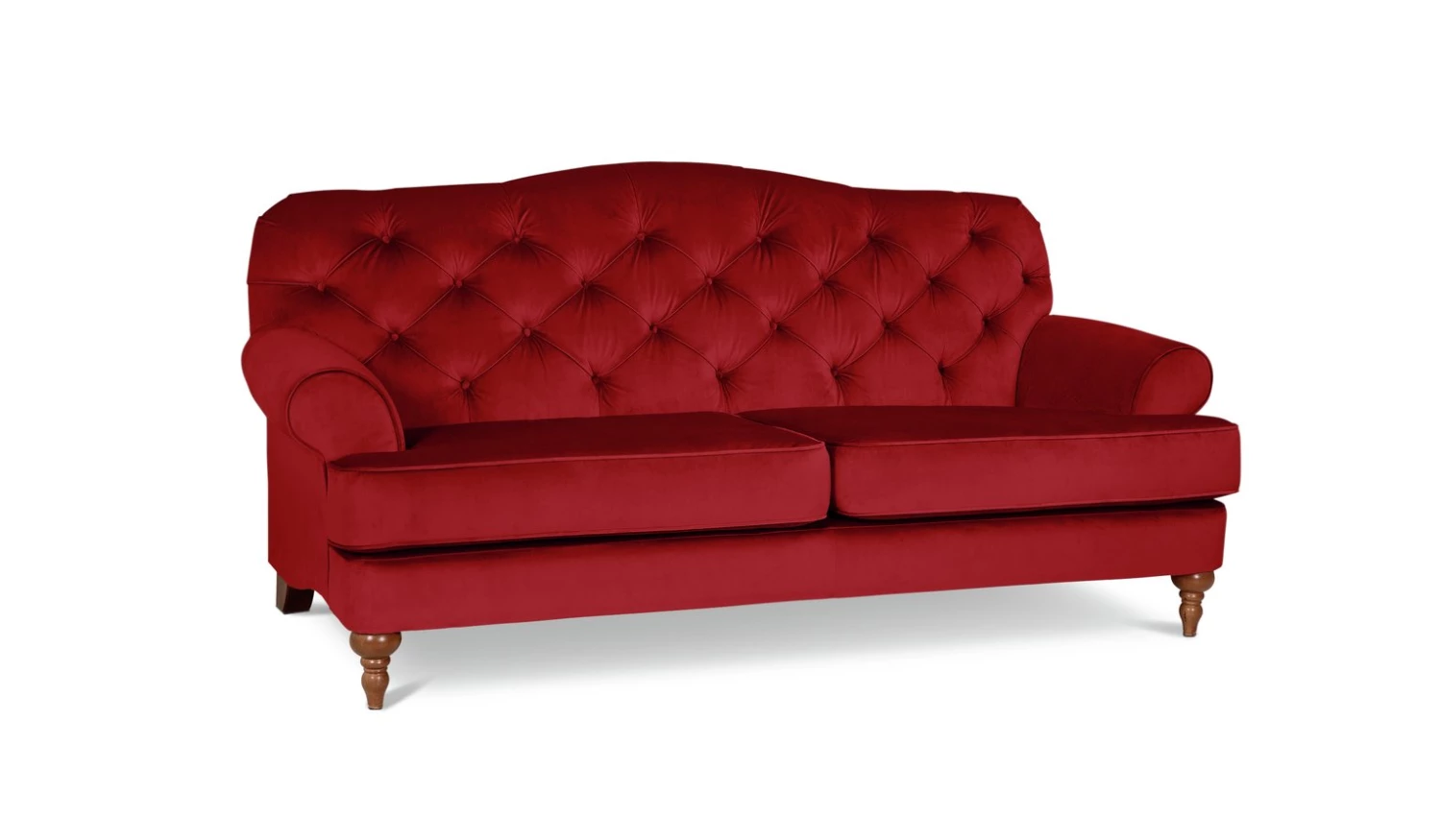 Surround yourself with true beauty. The 3-seater Valerie sofa is thoroughly classic. From its turned front feet to its deep buttoned back. It exudes elegance. The luxurious, soft-to-touch velvet stands out with its rich flame red tone. Its elegant look will withstand ever changing interior trends. The best of British, Valerie is manufactured right here in the UK. It's been carefully crafted to provide the best comfort. We're in love with its traditional look.