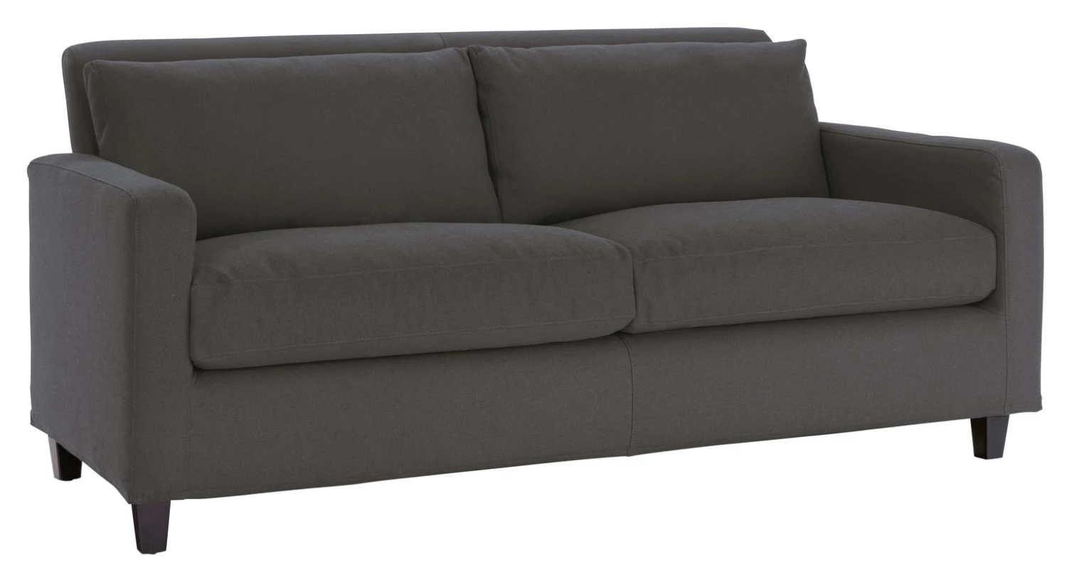 Lounge in style with this Italian made Chester charcoal 2 seater sofa, which features a slim profile and a feather and fibre seat cushions, for a classic and timeless look. Designed by Matthew Hilton for Habitat, the sofa is fully upholstered in a removable, durable fabric with dark stained feet. Part of the Habitat bestselling classic Chester sofa range, available in leather and fabric options, in various sizes and colours and with oak stained or dark stained feet.