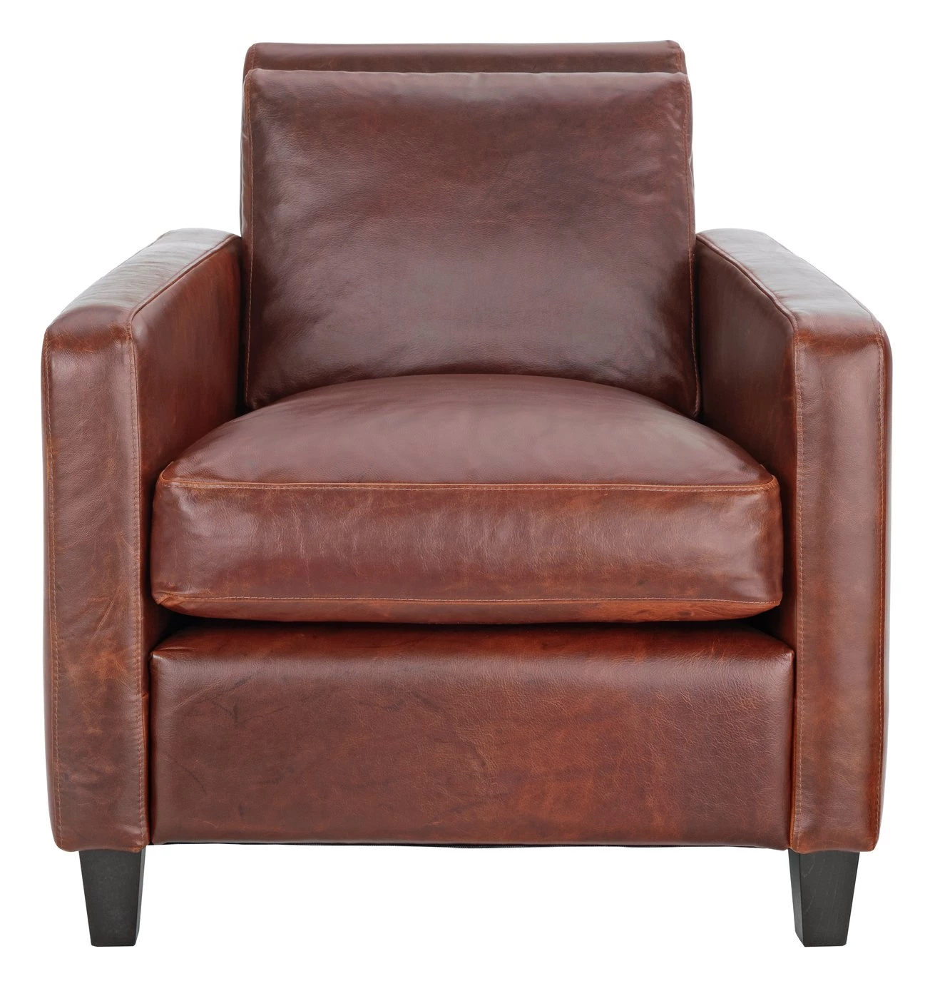 Lounge in style with this Italian made Chester tan leather armchair, fully upholstered in sumptuous tan leather with feather filled seat cushions, for a classic, timeless look. Designed by Matthew Hilton for Habitat and features a slim profile and dark stained feet. Part of the Habitat bestselling classic Chester sofa range, available in leather and fabric options, in various sizes and colours and with oak stained or dark stained feet.
