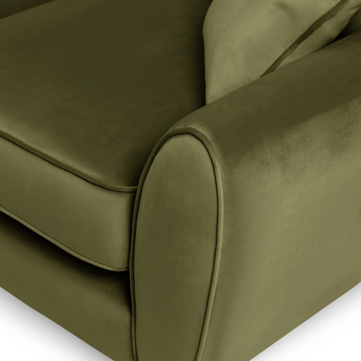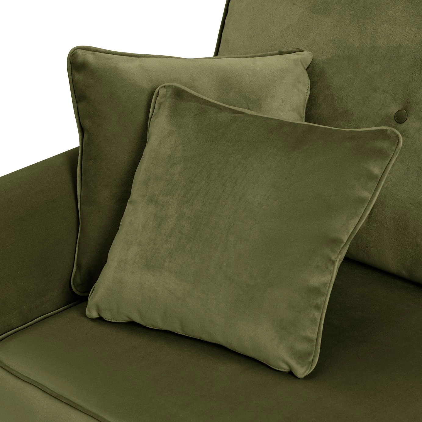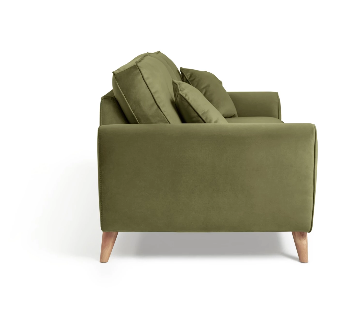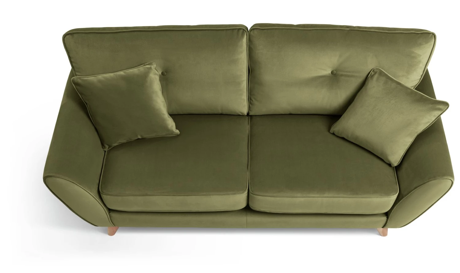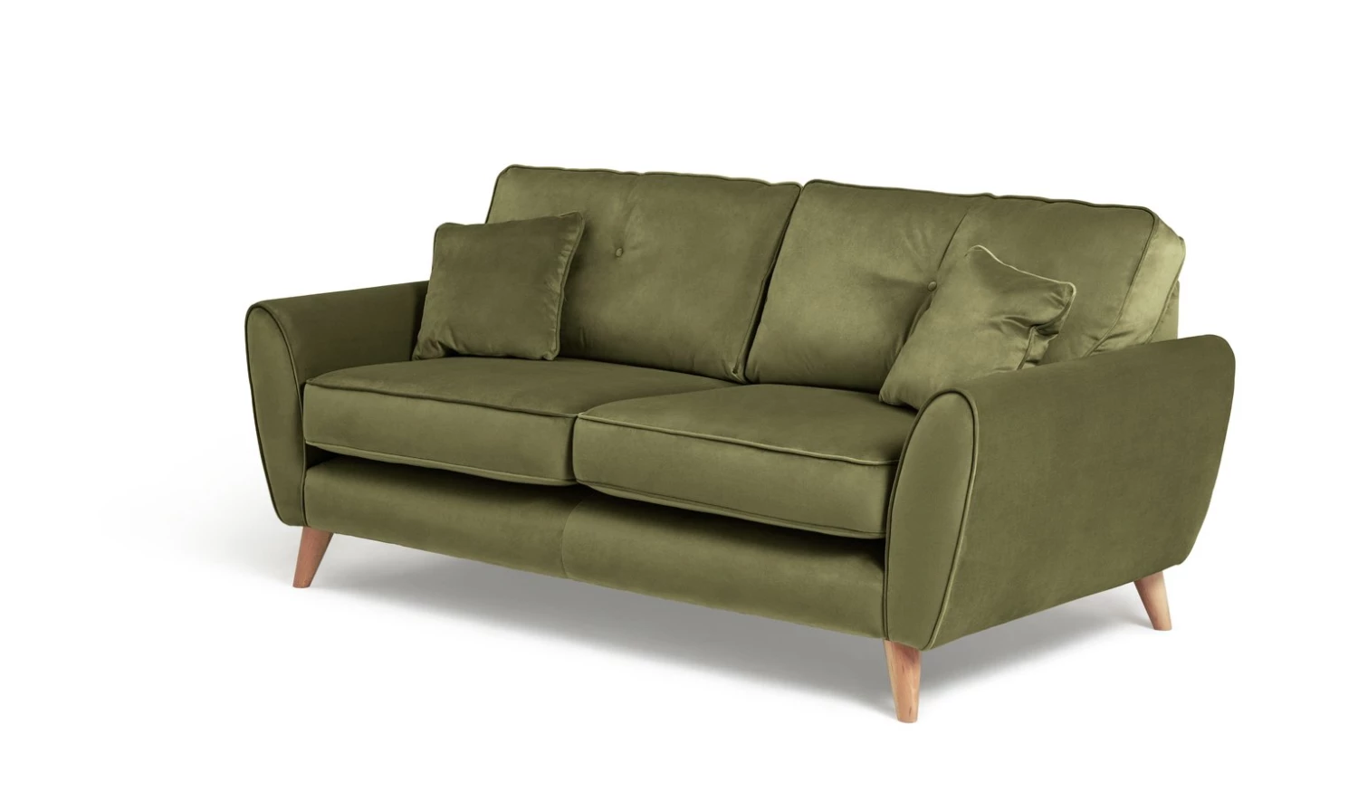 Elegant and snuggly soft, that's Isla. Our irresistible 3-seater sofa is designed with mid-century modern comfort in mind. Just look at those clean curves and traditional button details. Retro, right? While tapered, slim wooden legs lend a contemporary edge. Upholstered in 100% velvet, its smooth texture and gorgeous green tones bring a luxe, romantic touch to your living room. A sofa that feels just as good as it looks.