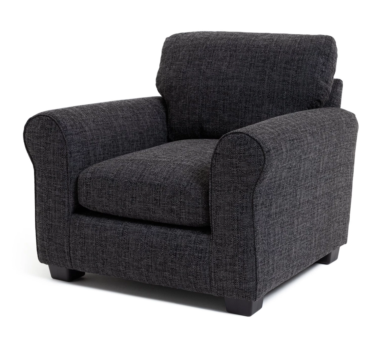 Snuggle up heaven. Soft cushions, plump arms and a deep comfy seat. Our Lisbon's soft luxe foam filling is just waiting for you to curl up and watch your favourite film. Designed for comfort and looks, it's an ingenious update on the classic scroll-arm armchair. Made to last with its solid internal hardwood frame and upholstered in a durable, soft woven fabric it is a stylish and timeless accent armchair. We love Lisbon.