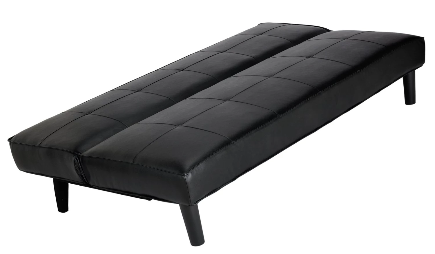 Spacious sofa. Soft sleep space. The Patsy sofa bed is the ideal solution when you have guests to stay. The sleek design, in a stylish black faux leather, is perfect for any modern home. Fold it out flat using the clic clac mechanism, and it transforms into a comfy single bed. With a striking stitching detail, Patsy is quite the looker. Go on, style up that spare room.