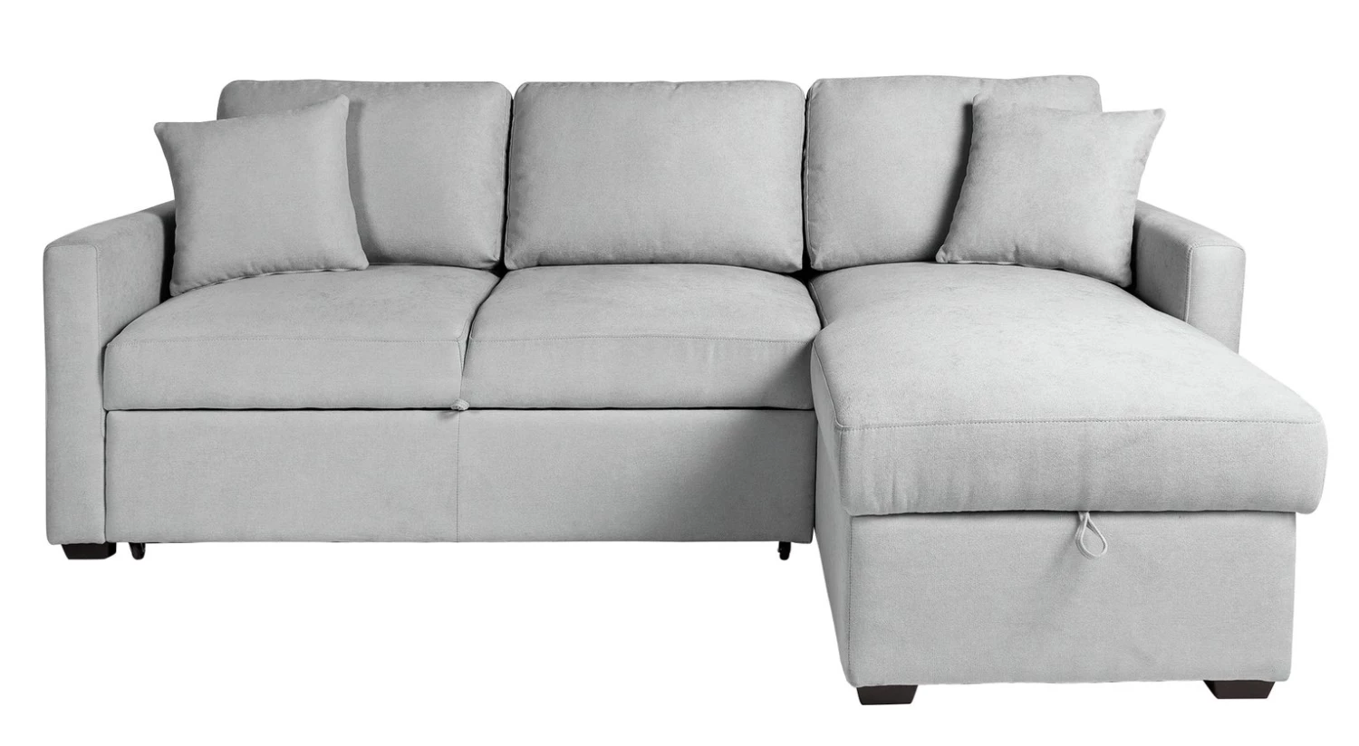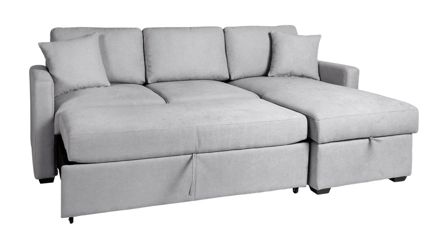 Smart lines, simple styling and handy storage space. There's a lot of reasons to love Reagan. This corner sofa bed from Habitat has a left-hand chaise design, ideal for lounging. It makes a great divide between the lounge and kitchen of an open floor plan.