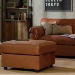 Flash Sale – Habitat Florence Leather Footstool Tan Sofas And Armchairs