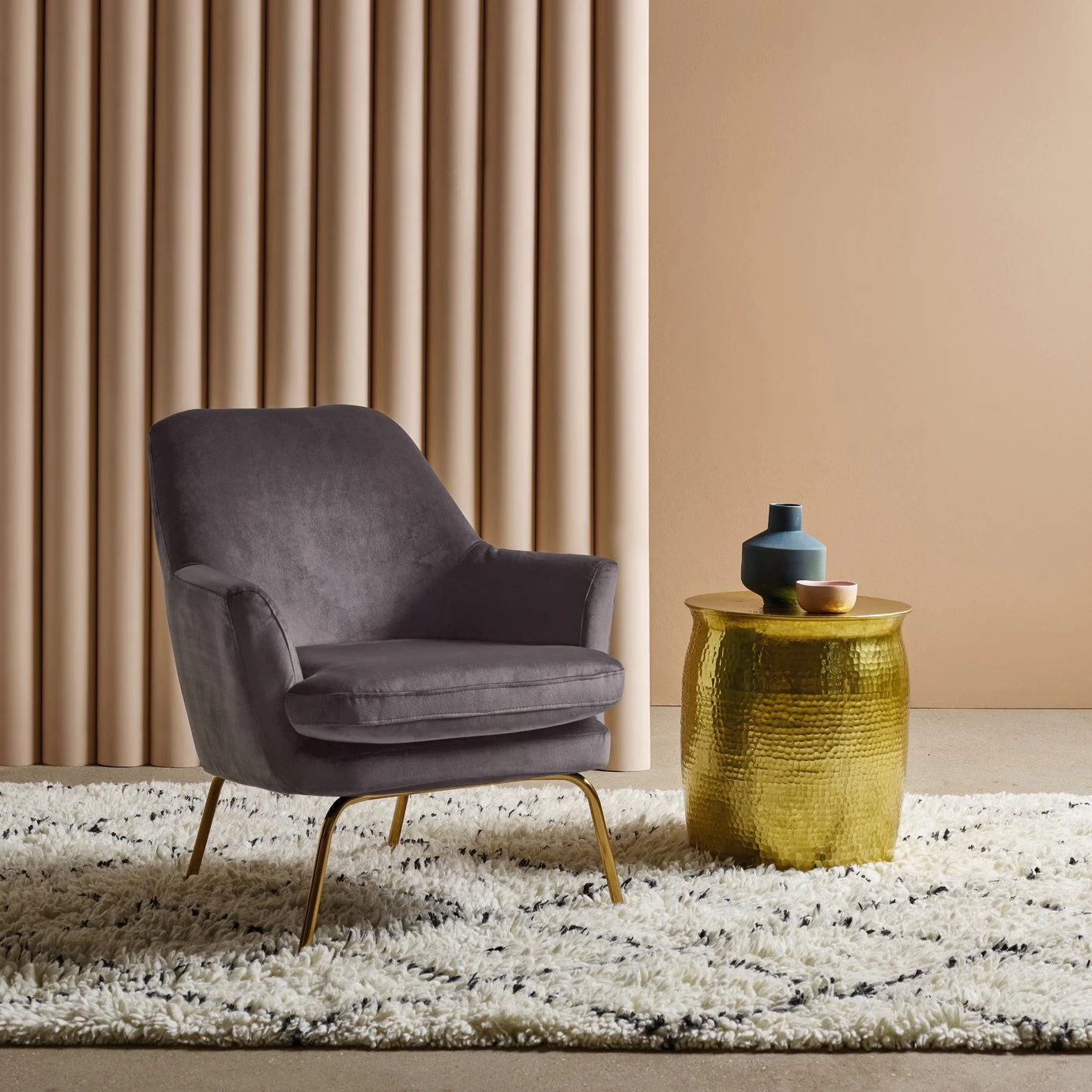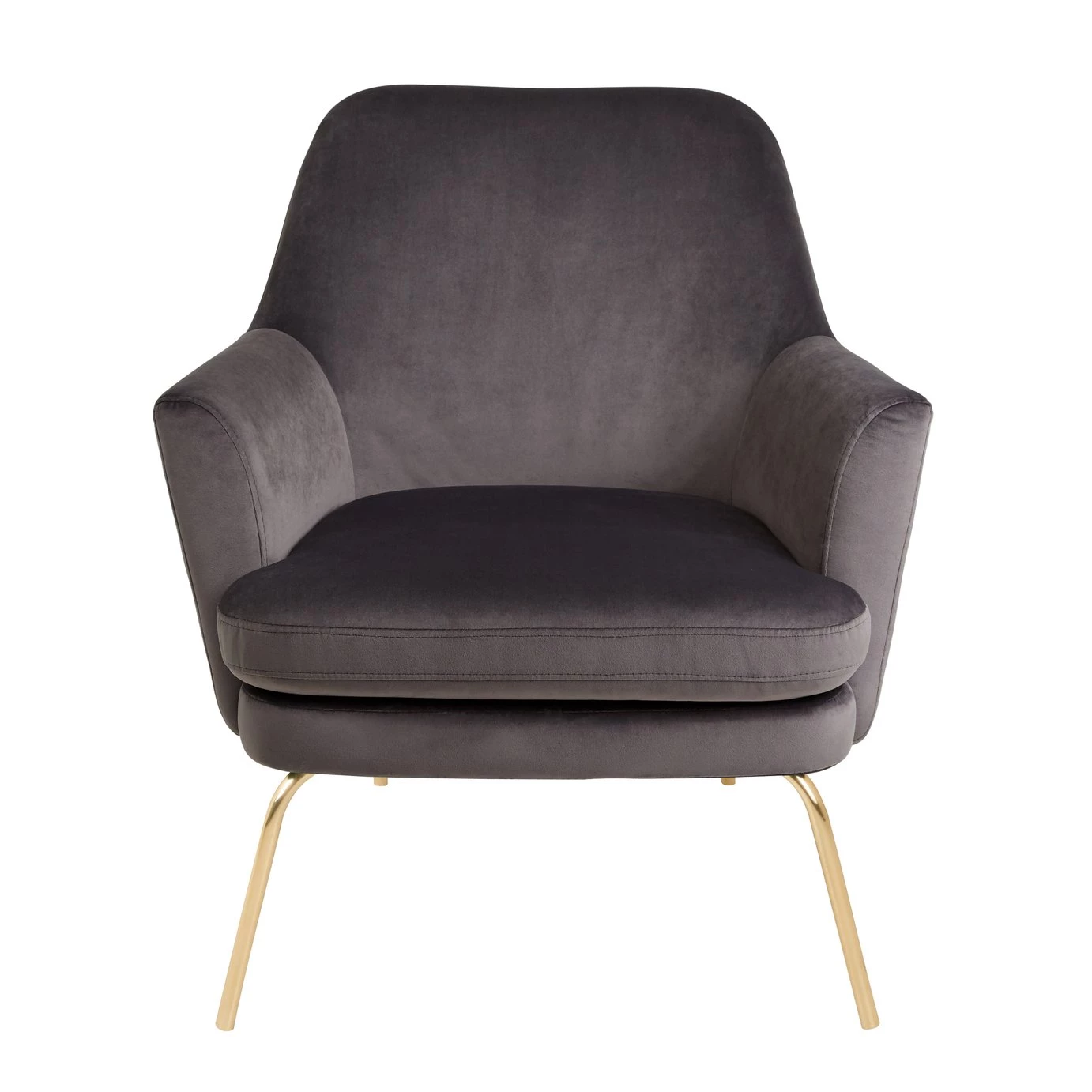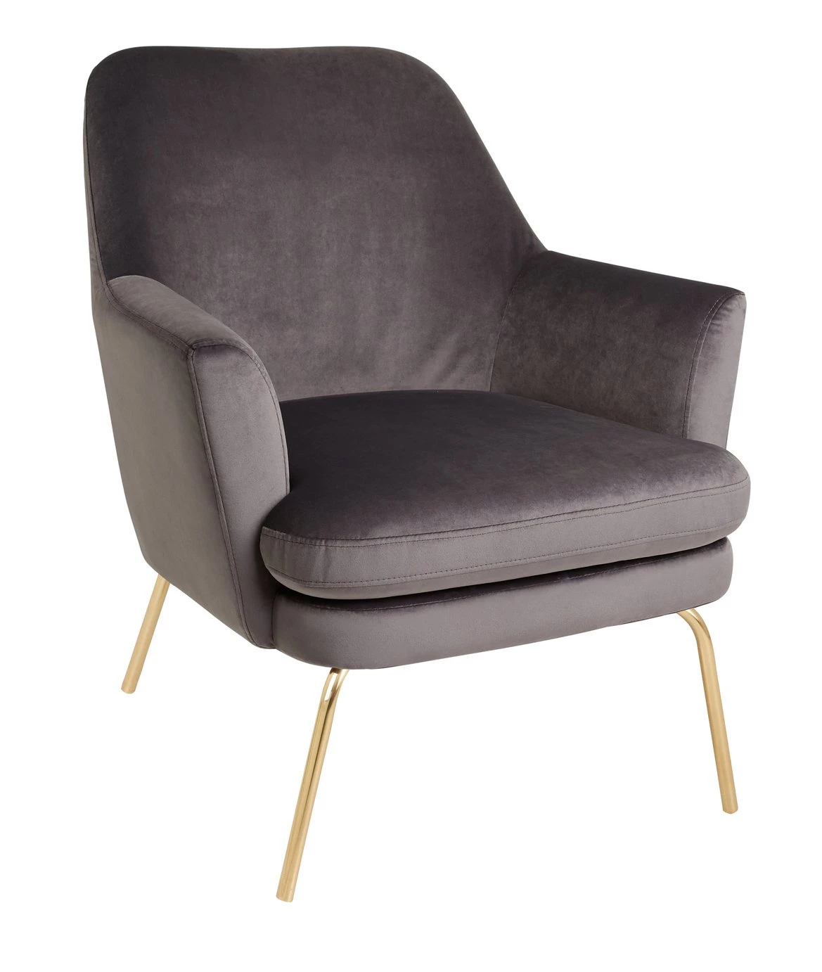 With its gentle round edges, high reclined back and sumptuous padding, the foam-filled seat cushion invites you to relax and wind down in style. This elegant and luxurious design is finished with brass metal legs for a contemporary, lighter-than-air look, which makes it ideal for smaller spaces. Exclusive to Habitat and available in a choice of colours, the Celine chair is upholstered in durable polyester velvet and its seat cushion has piping to maintain its clean edge.