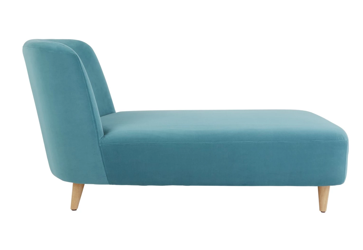 Perfect for small spaces, the Daisy teal velvet chaise longue is a luxurious design. With a gently curved back and solid oak tapered legs, this chaise longue will add a modern touch to your space and is a great addition to a living room or bedroom. An elegant design, Daisy is upholstered in plush polyester velvet for big visual appeal.