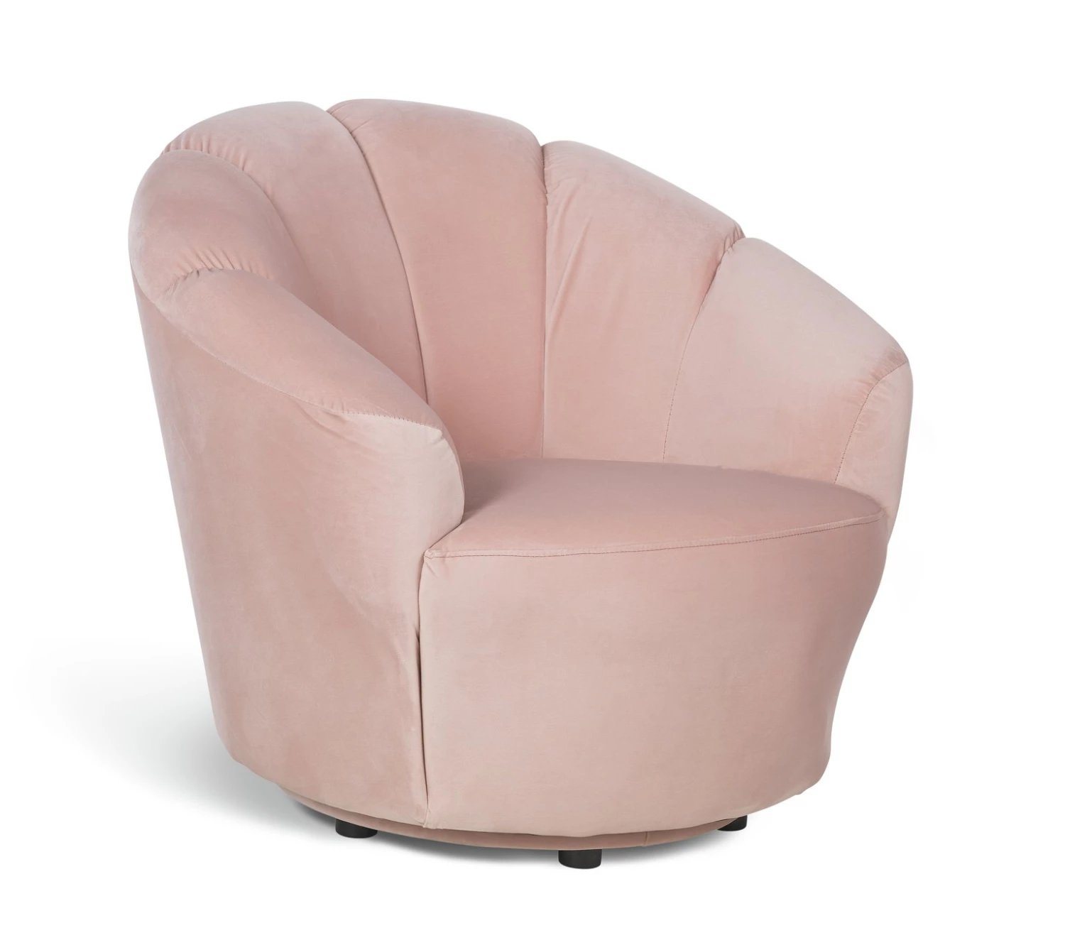 Clam-inspired comfort. With its scalloped back, Ezra makes a stunning statement piece. Its plush soft velvet-effect finish will add a wonderfully warm texture to your space. This gorgeous chair looks fabulous in the lounge or bedroom. Its finished with a swivel base, so why not take it for a spin?